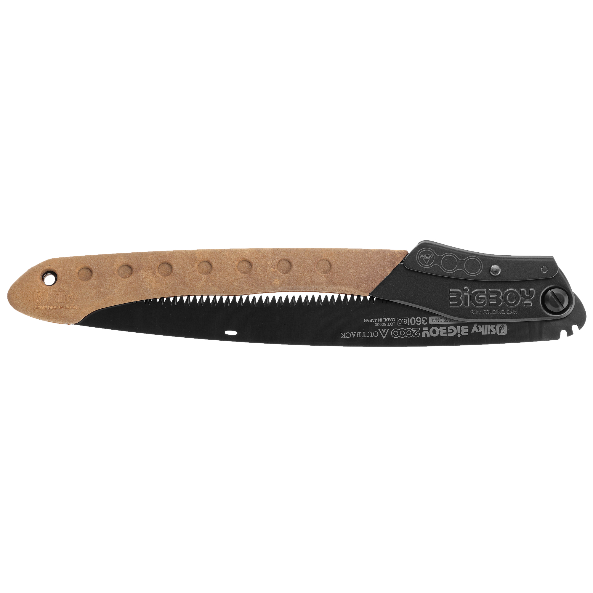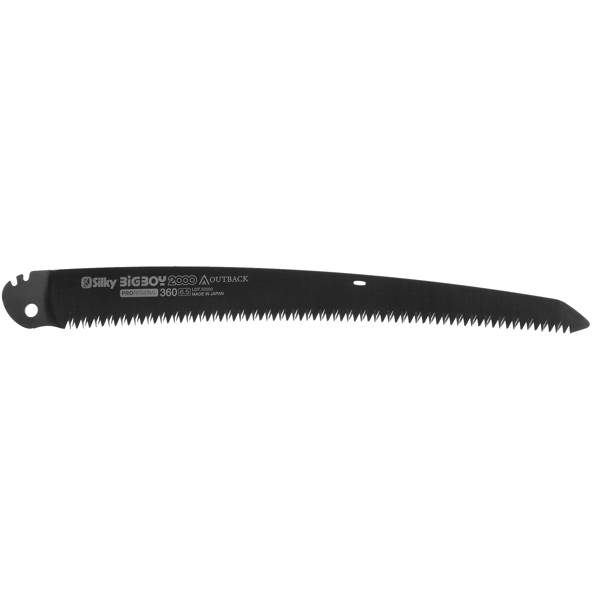 Silky BigBoy 2000 Outback Edition ma brzeszczot o długości 360 mm z szerokim ząbkowaniem (6,5 zęba na 30 mm długości brzeszczota), który idealnie sprawdzi się do cięcia świeżego i suchego drewna oraz kości. Ostrze o zakrzywionym profilu w odróżnieniu od pił prostych przyspiesza cięcie i zwiększa wydajność pracy nawet o 15-20%. Łukowaty kształt zapobiega także wypadaniu piły z rzazu oraz ułatwia ścinanie gałęzi znajdujących się ponad naszymi ramionami.