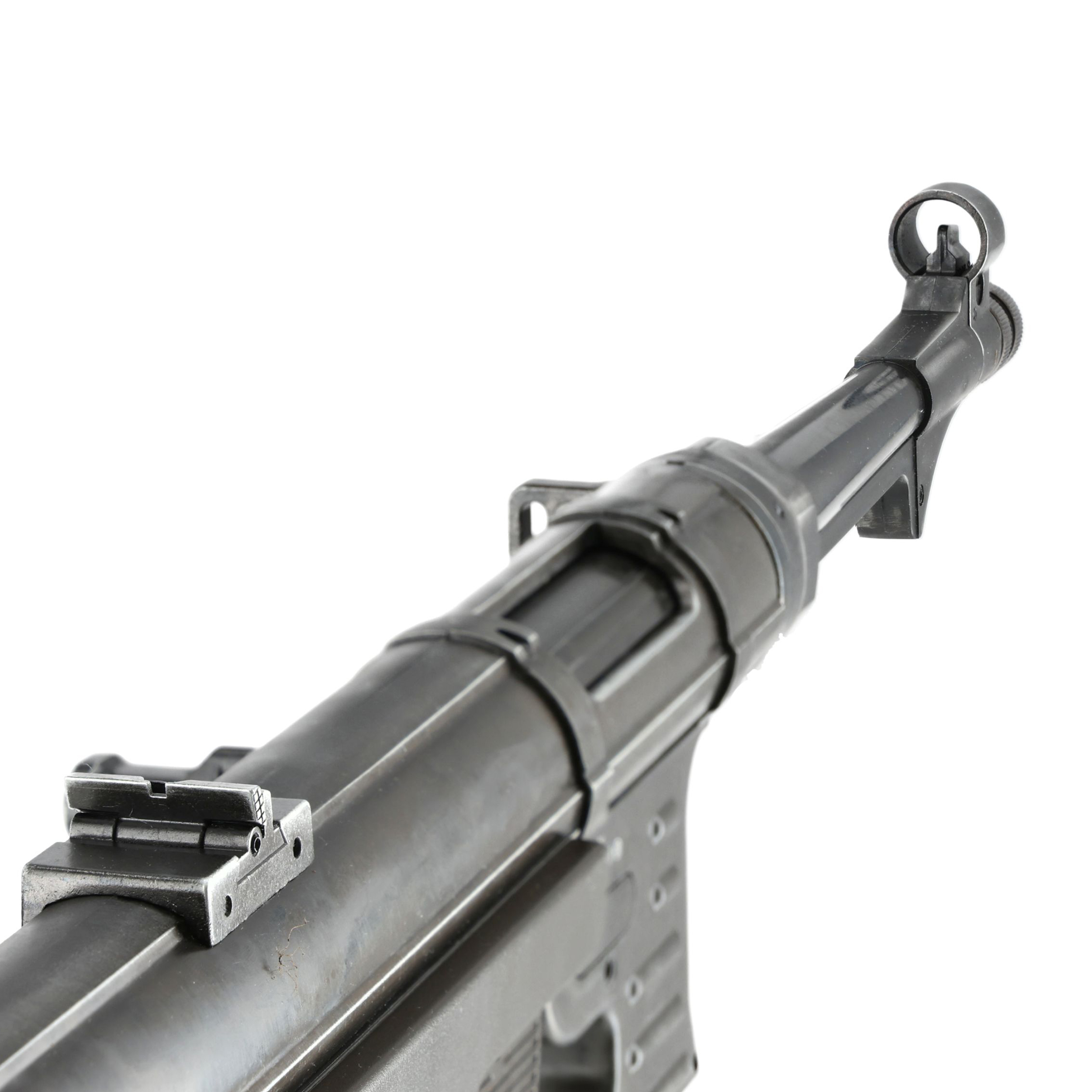 Powierzchnię metalu poddano celowemu zabiegowi postarzania, dlatego MP German wygląda jak prawdziwa broń używana przez żołnierzy podczas walki.