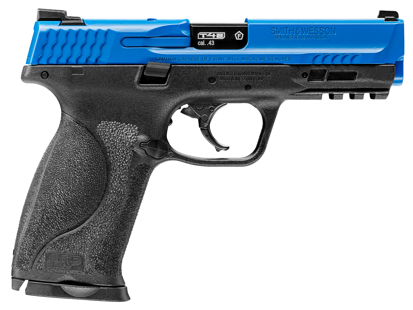 Smith&Wesson M&P9 M2.0 T4E LE kal. 43 wykonano na podstawie budowy i mechaniki broni palnej. W konstrukcji pistoletu można wyróżnić solidny polimerowy szkielet, na którym osadzono ruchomy, metalowy zamek pracujący podczas strzału. Pistolet ma wiele elementów zgodnych z oryginałem m.in. bezpiecznik spustowy, szynę akcesoryjną, zamek żebrowany w przedniej i tylnej części, regulowaną w poziomie szczerbinę oraz wycięcie w stopce magazynka, pozwalającego na jego wyszarpnięcie podczas zacięcia. Użytkownik może także modyfikować wielkość chwytu, stosując w tym celu wymienne nakładki rękojeści (rozmiary S, M, L). Takie rozwiązanie jest niezwykle przydatne w sytuacji, gdy z pistoletu korzysta kilku użytkowników w różnym wieku lub wzroście. Pistolet ma mechaniczne przyrządy celownicze z żółtymi oznaczeniami (szczerbinka), odpowiadające za szybsze i bardziej instynktowne zgrywanie muszki i szczerbinki, co jest szczególnie przydatne podczas strzelania przy słabszym oświetleniu. W przedniej części szkieletu znajduje się szyna akcesoryjna w standardzie Picatinny, służąca do montażu laserowego znacznika celu lub latarki taktycznej. Na zamku oraz szkielecie naniesiono licencjonowane oznaczenia producenta Smith&Wesson.