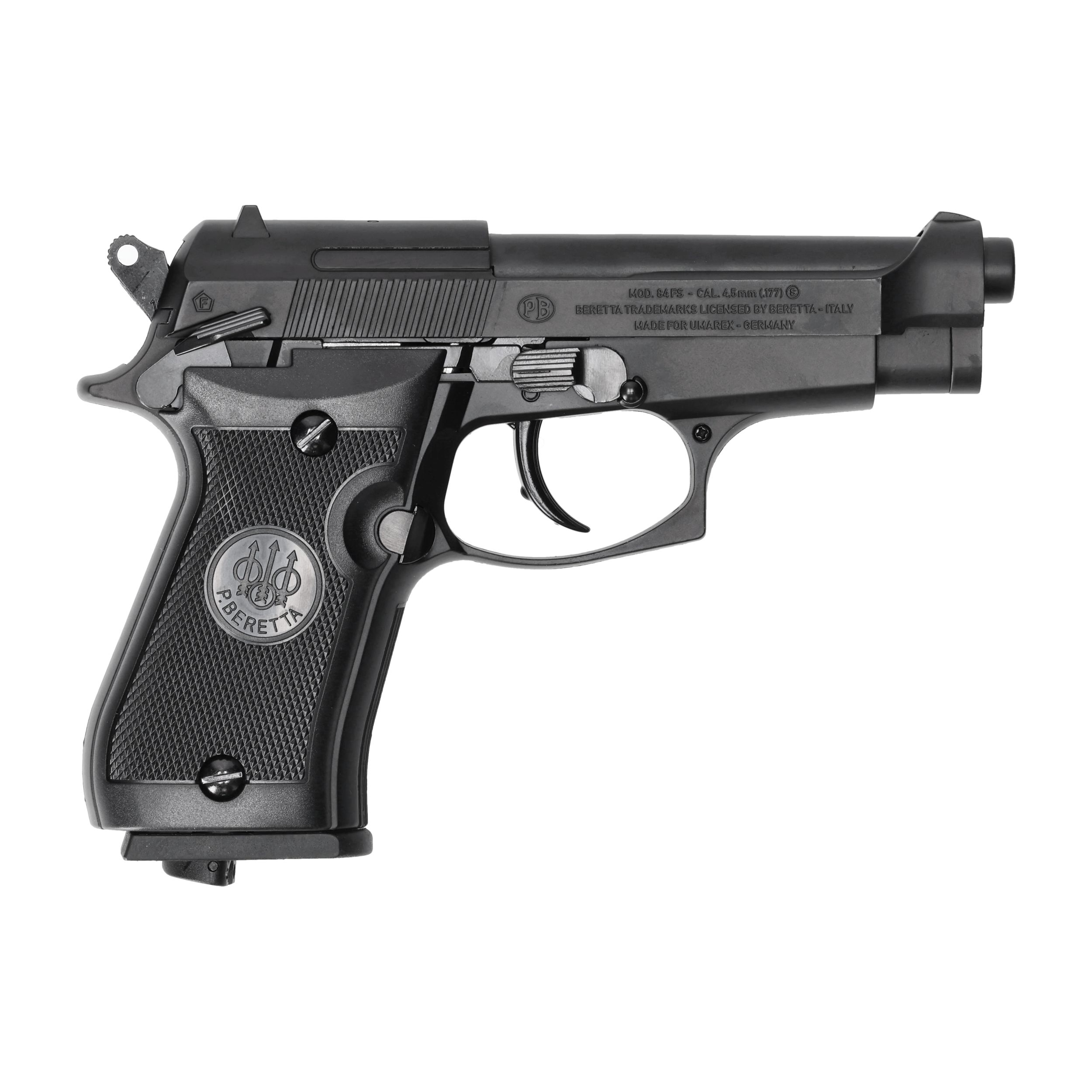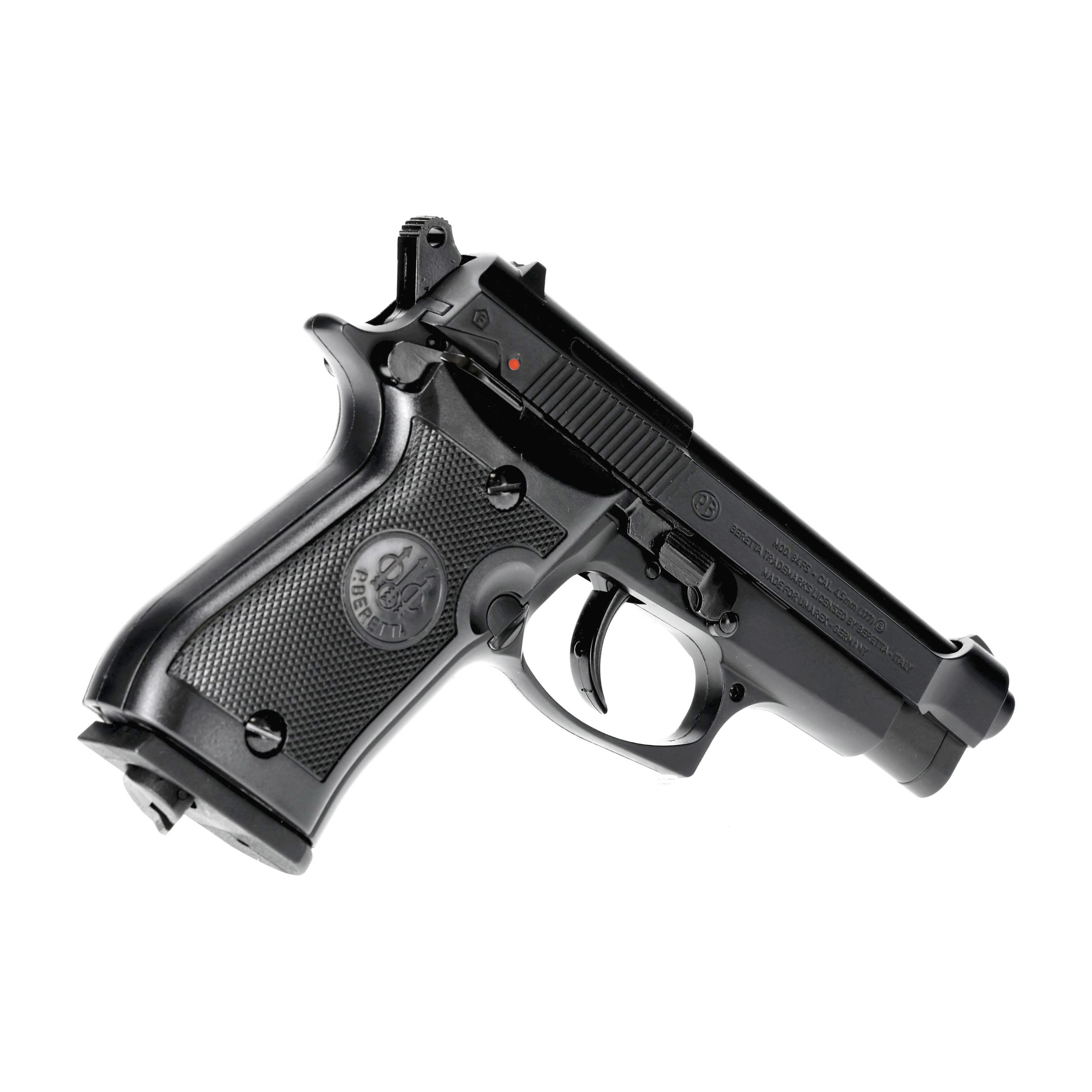 Beretta M84 FS 4,5 mm BB CO2 to kompaktowa wiatrówka o metalowej konstrukcji, wyposażona w system odrzutu zamka, mechanizm spustowy DA, obustronny bezpiecznik oraz pojemny magazynek.