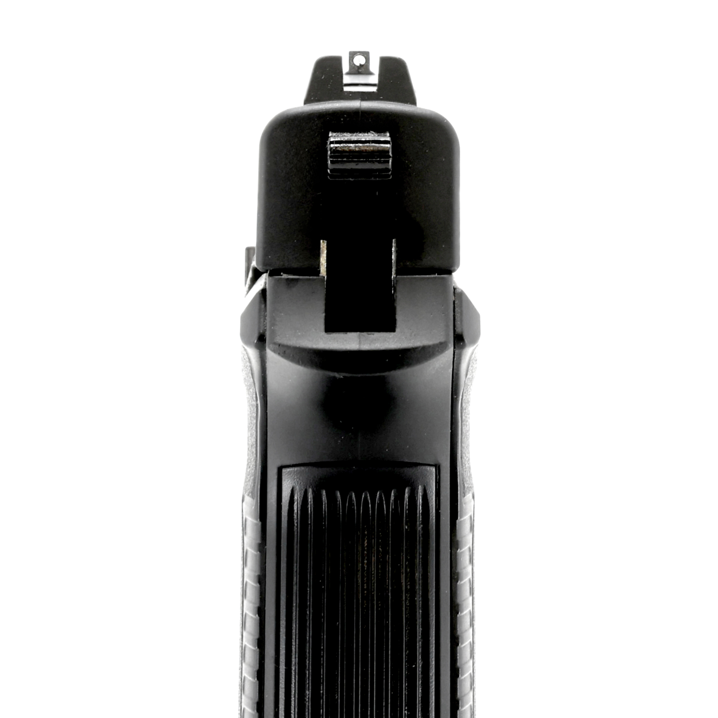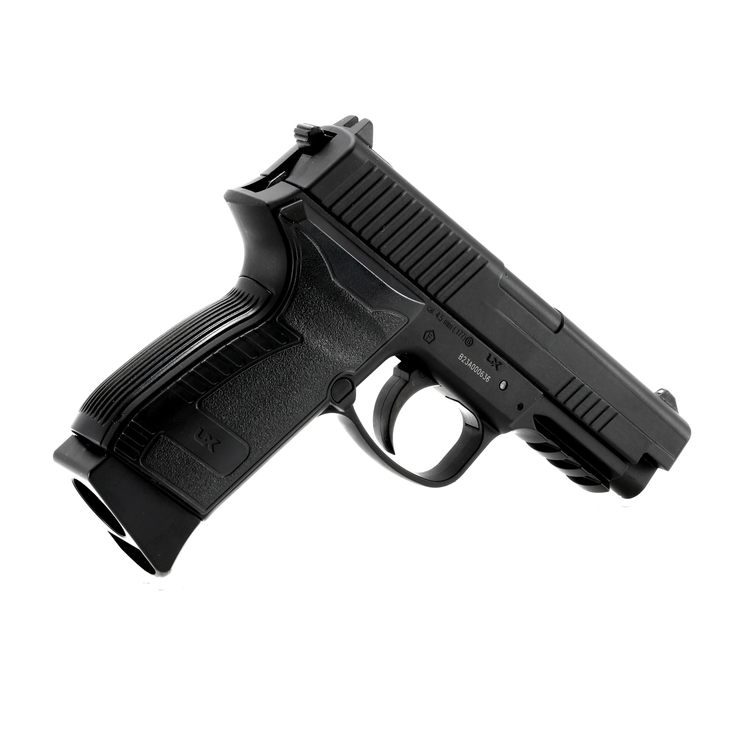 Antypoślizgowe teksturowanie rękojeści oraz przedłużona stopka magazynka zapewniają pewny i komfortowy chwyt wiatrówki bez względu na wielkość dłoni. Zamek pistoletu jest żebrowany w tylnej części, co pozwala na komfortowe przeładowanie.