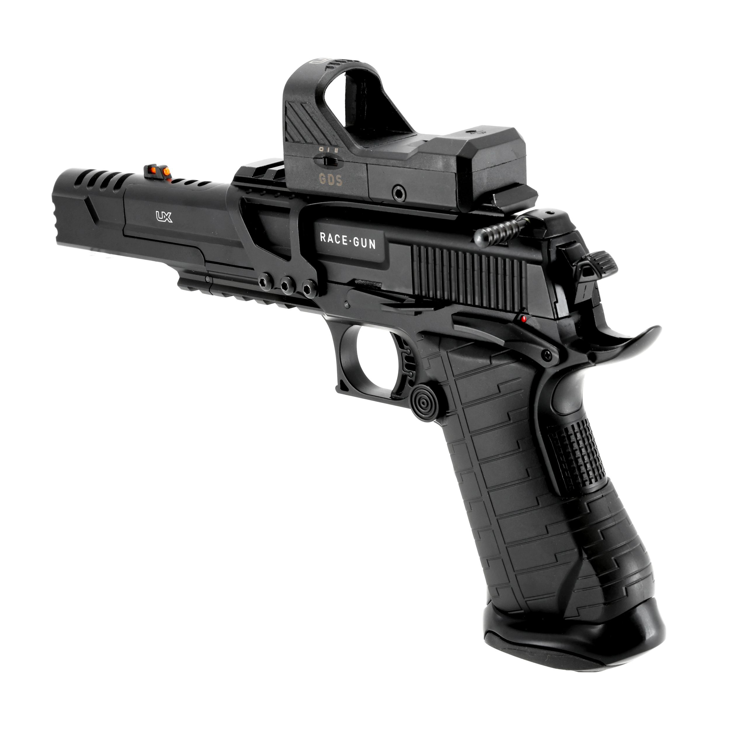 Umarex RaceGun Set 4,5 mm to zaawansowana wiatrówka na CO2 z systemem blow-back, wzorowana na pistoletach sportowych używanych w konkurencji IPSC.