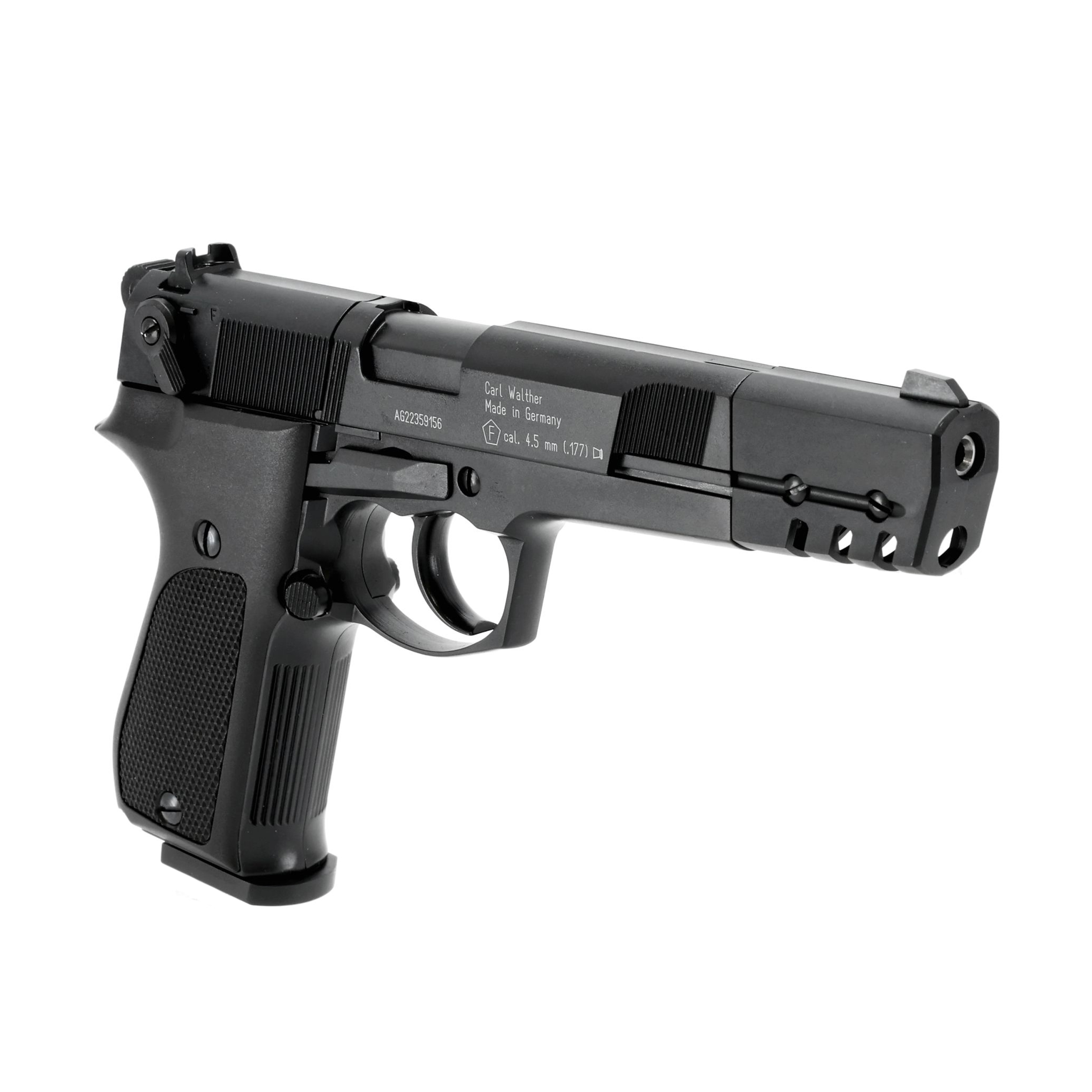 Zamek pistoletu, podobnie jak oryginał jest żebrowany w przedniej i tylnej części, co miało ułatwić przeładowanie. Wszystkich pasjonatów broni i militariów z pewnością ucieszy fakt, że na wiatrówce naniesiono licencjonowane oznaczenia producenta Walther.