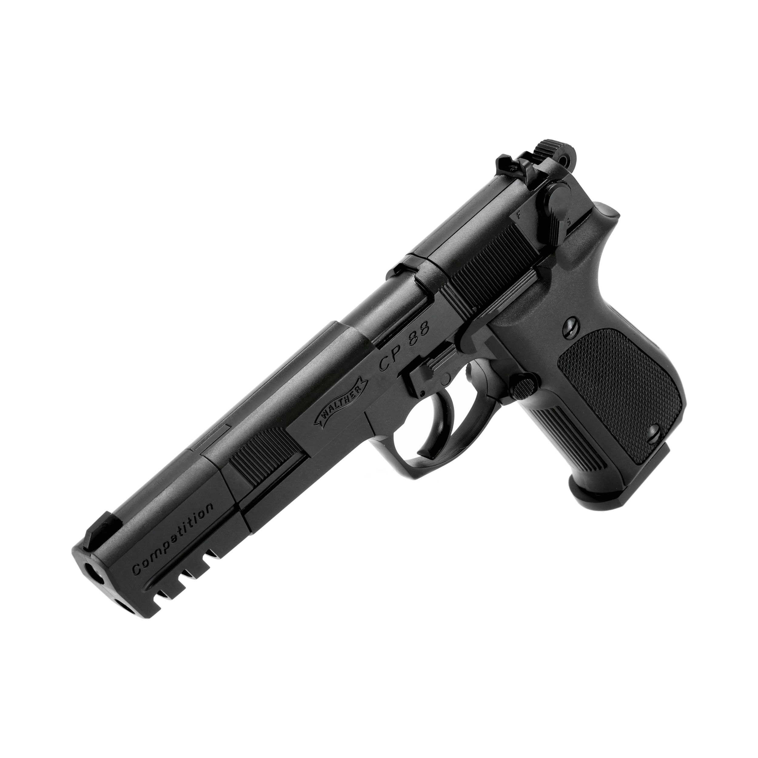 Walther CP88 w wersji Competition został wyposażony w dłużsżą 5,5" lufę oraz kompensator, które zapewniają lepsza celność oraz nadają wiatrówce sportowego charakteru.