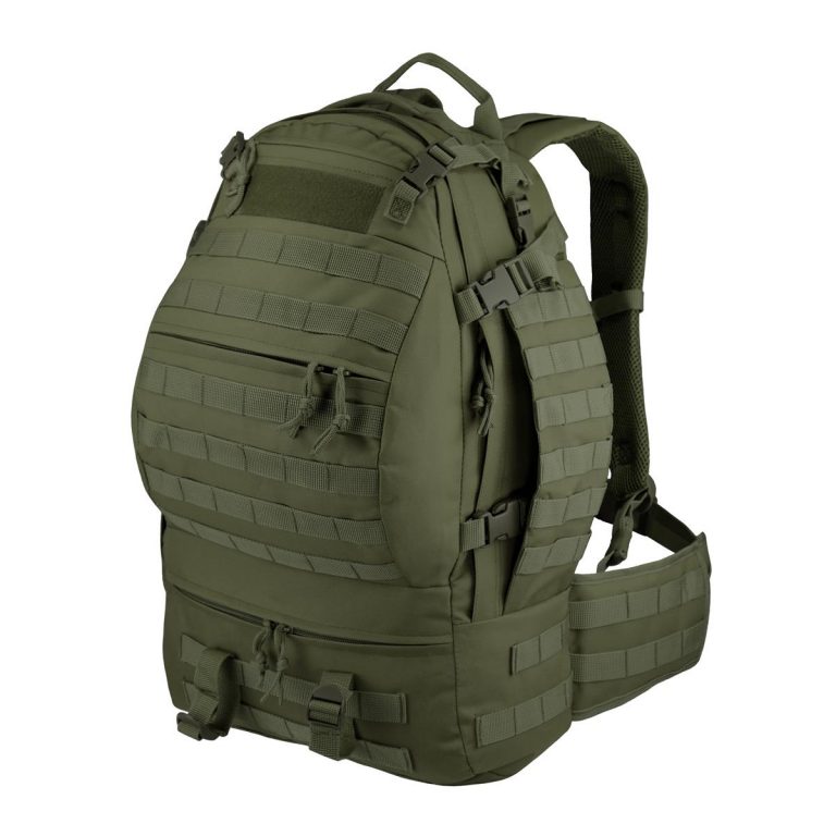 Plecak Cargo 32L – Olive to średniej wielkości, taktyczny plecak wzorowany na konstrukcji USAF DFLCS GCS. Wykonany z wytrzymałego poliestru 600 D, odporny na przetarcia i wilgoć, o pojemności 32 l. Posiada pojemną komorę główną, liczne kieszenie (w tym duża kieszeń dolna, duża i mała górna, płaska w środku), panele boczne kompatybilne z systemem MOLLE, szerokie, profilowane szelki z siateczką, pas biodrowy i piersiowy, taśmy kompresyjne, D-ringi, troki montażowe, rzep identyfikacyjny i dwa uchwyty transportowe. Idealny do turystyki, outdooru, survivalu i codziennego użytku.