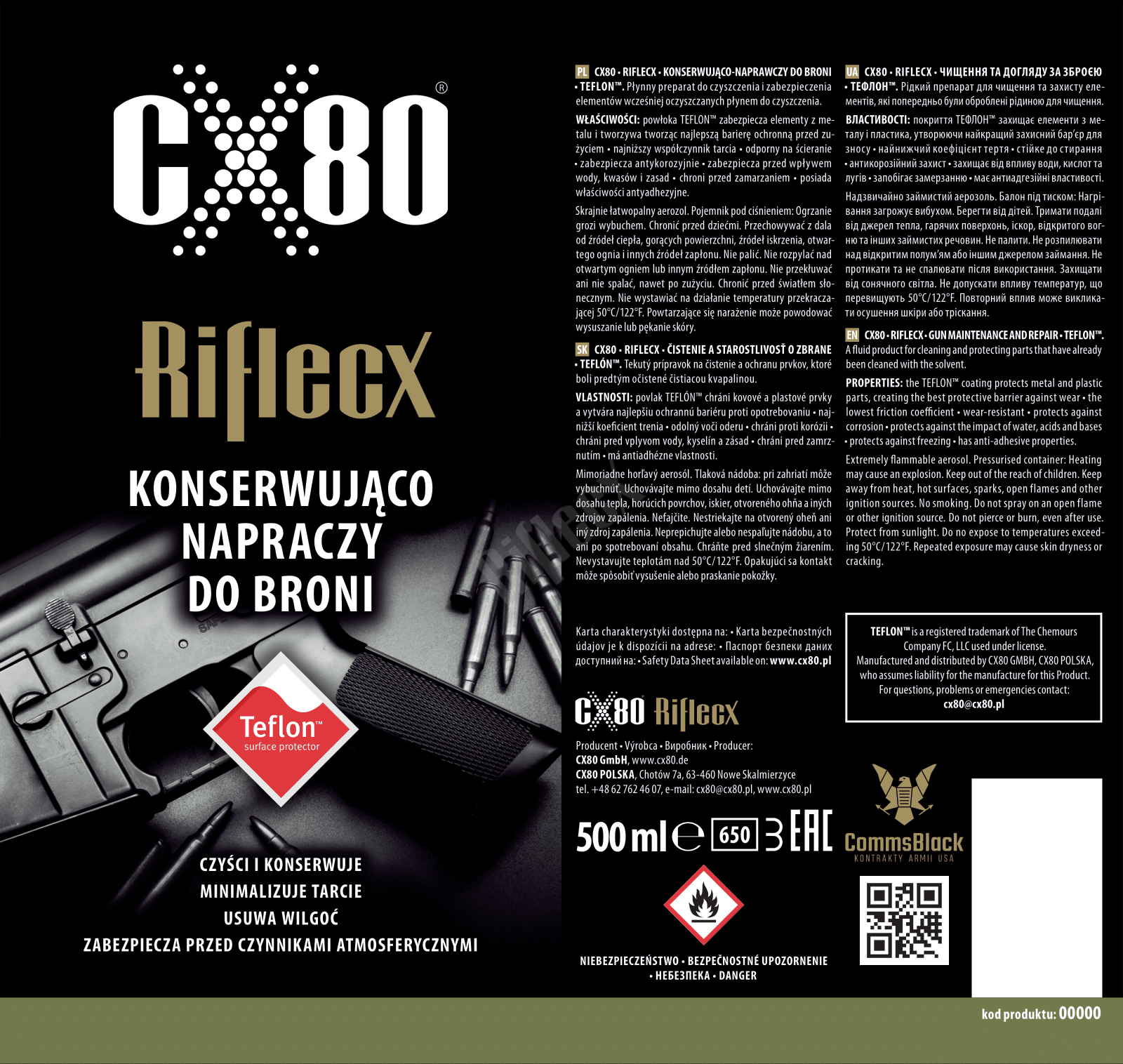 Riflecx, jako jeden z nielicznych producentów na świecie, używa oryginalnego Telfonu® firmy DuPont a nie chińskich zamienników. Dzięki temu masz pewność, że Twoją broń pokrywa produkt najwyższej jakości, chroniący ją przed rdzą.