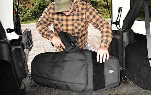Wszyty niemal na całej długości pokrowca dwukierunkowy zamek błyskawiczny zapewnia wygodny dostęp do broni.