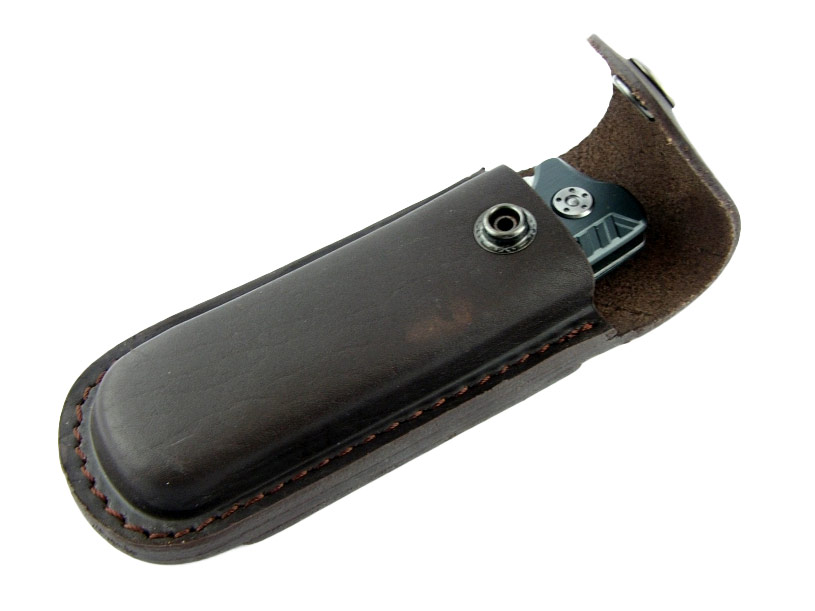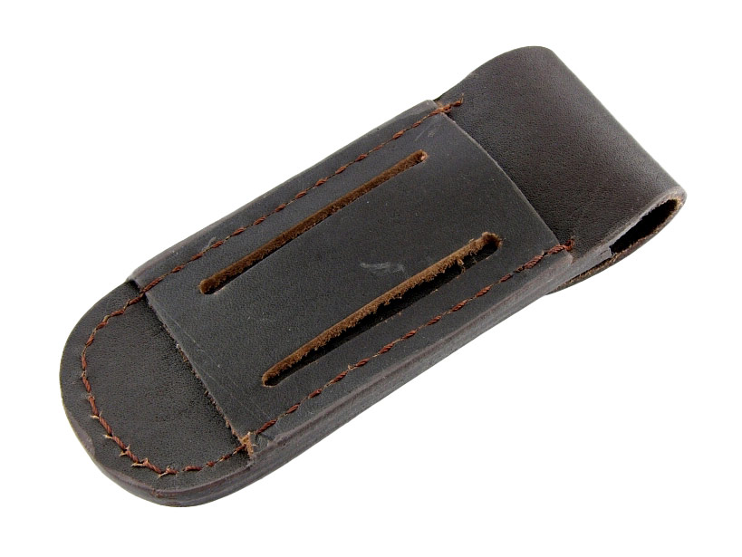 Skórzany pokrowiec na nóż z możliwością przypięcia do paska pionowo i poziomo. Zapięcie na metalowy klips. Wyprodukowany przez Hiszpańską markę Joker znanej na całym świecie ze swoich doskonałych wyrobów.