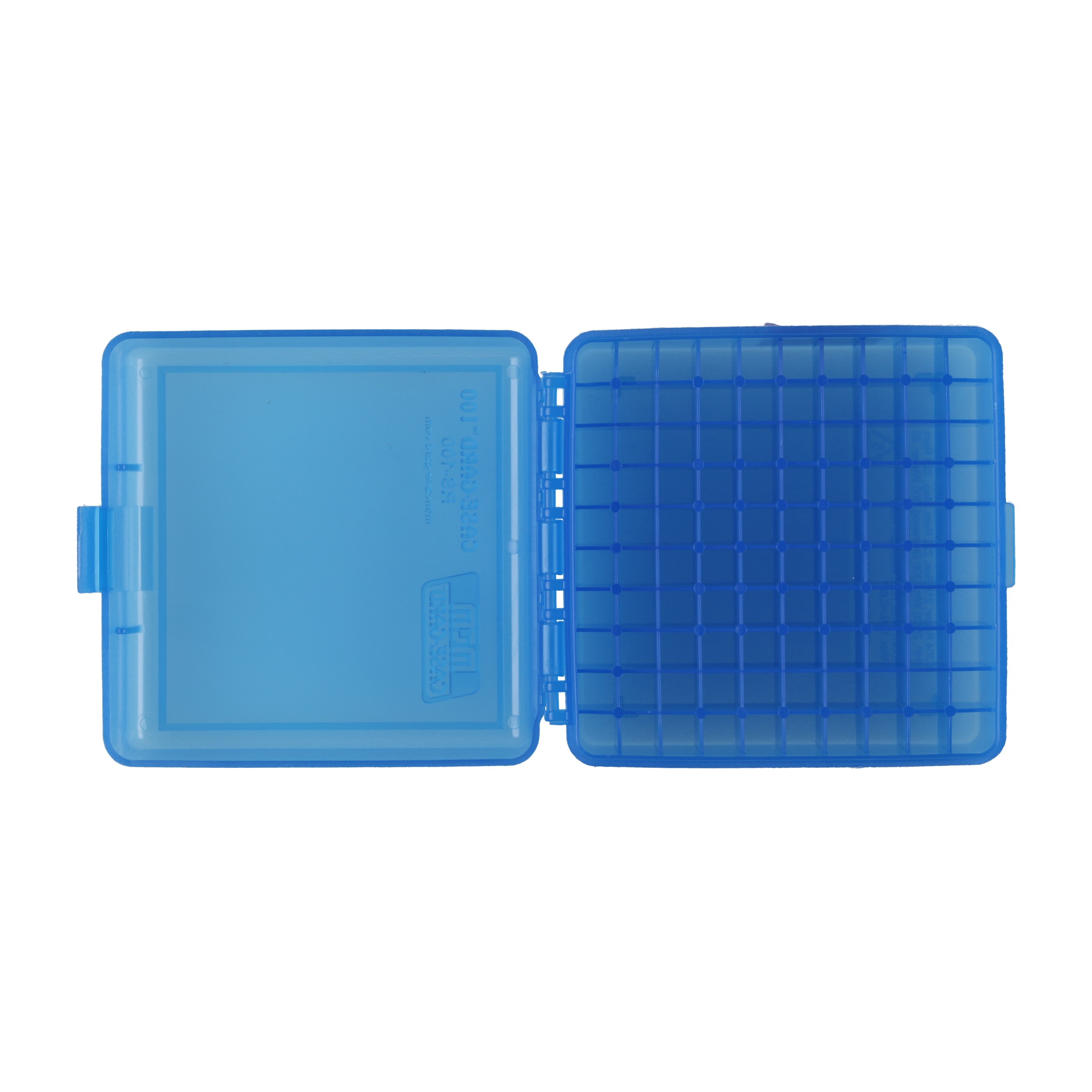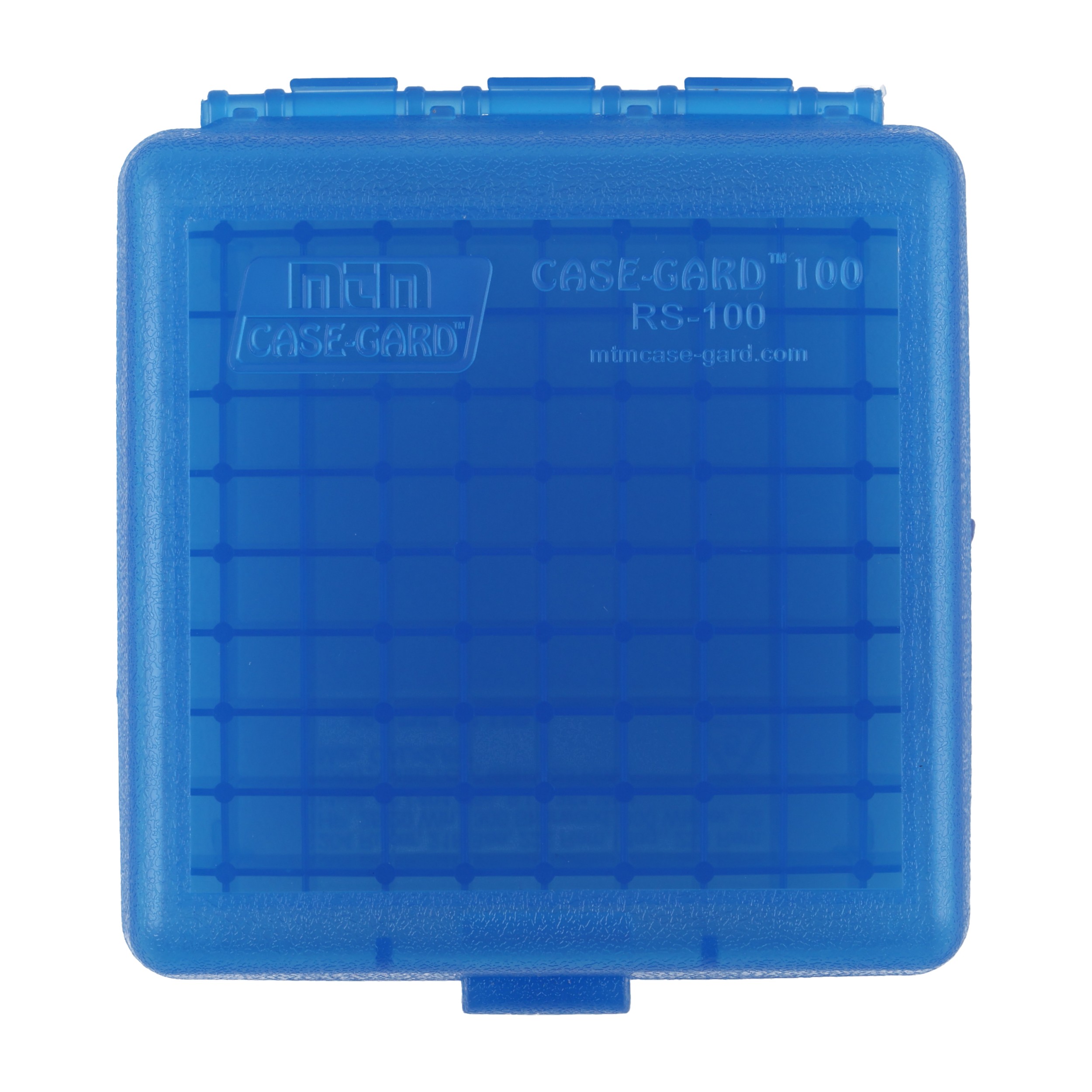 Pudełko na amunicję MTM RS-50-24 to proste i solidne etui na 100 sztuk amunicji kulowej. Wykonane z przeźroczystego, zabarwionego na niebiesko tworzywa umożliwia wygodny transport amunicji.