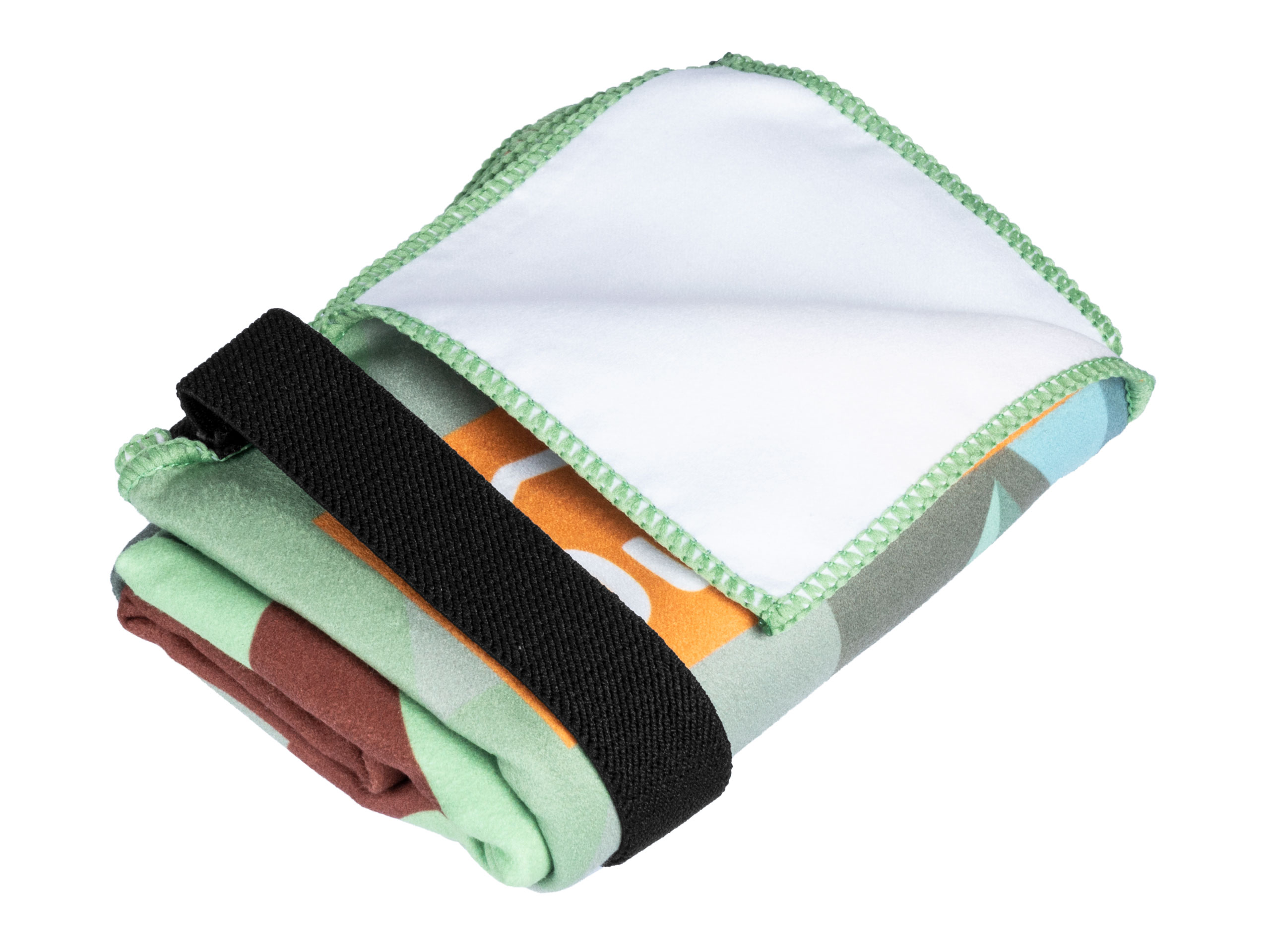 Pokrowiec ma wygodne otwarcie (klapkę zamykaną na rzep) oraz praktyczny aluminiowy karabińczyk pozwalający wygodnie zawiesić ręcznik.
