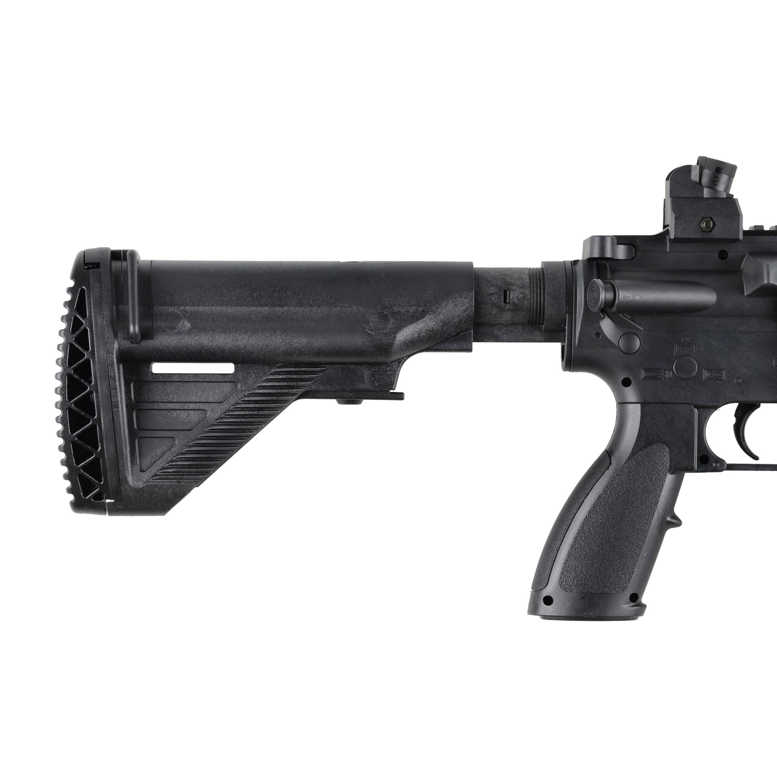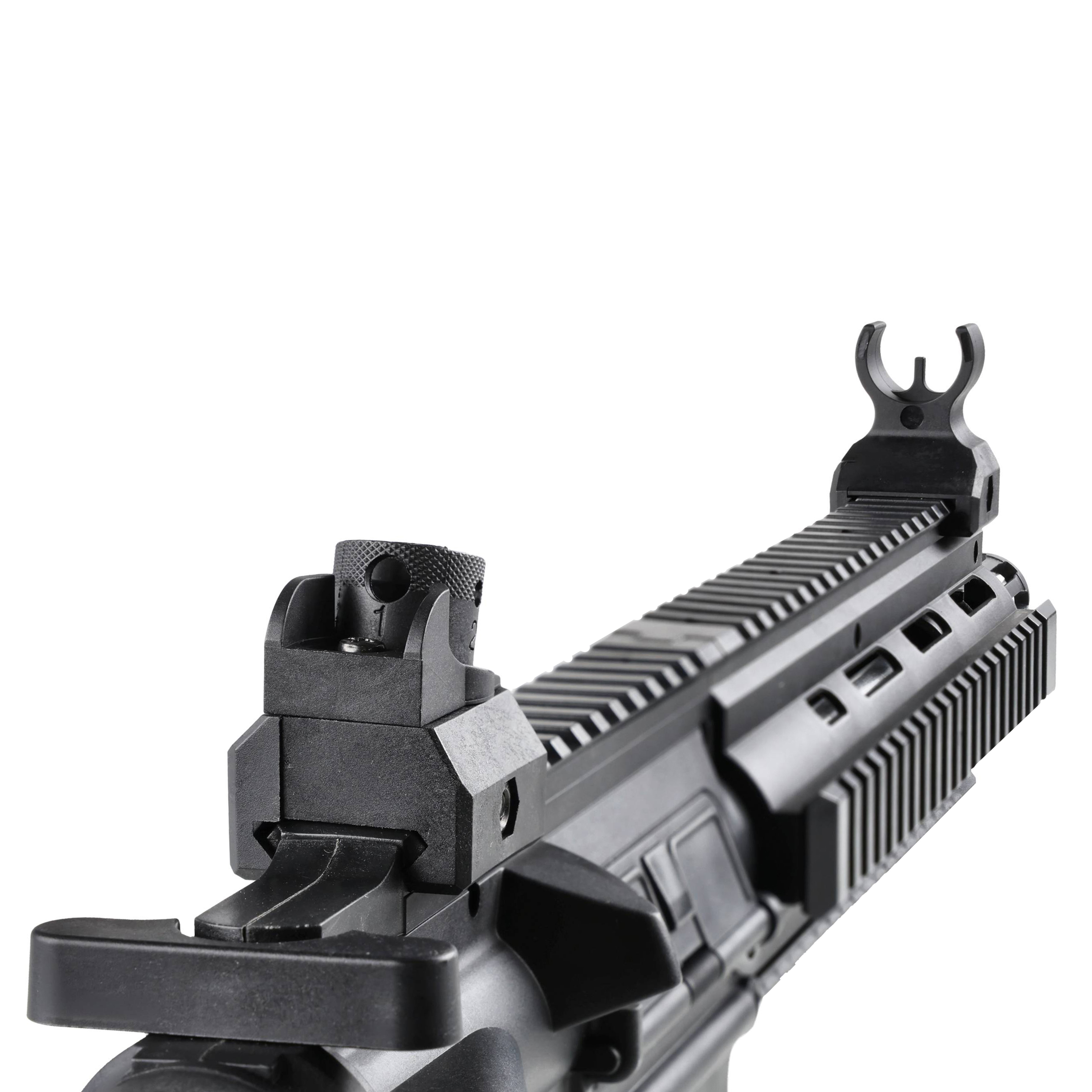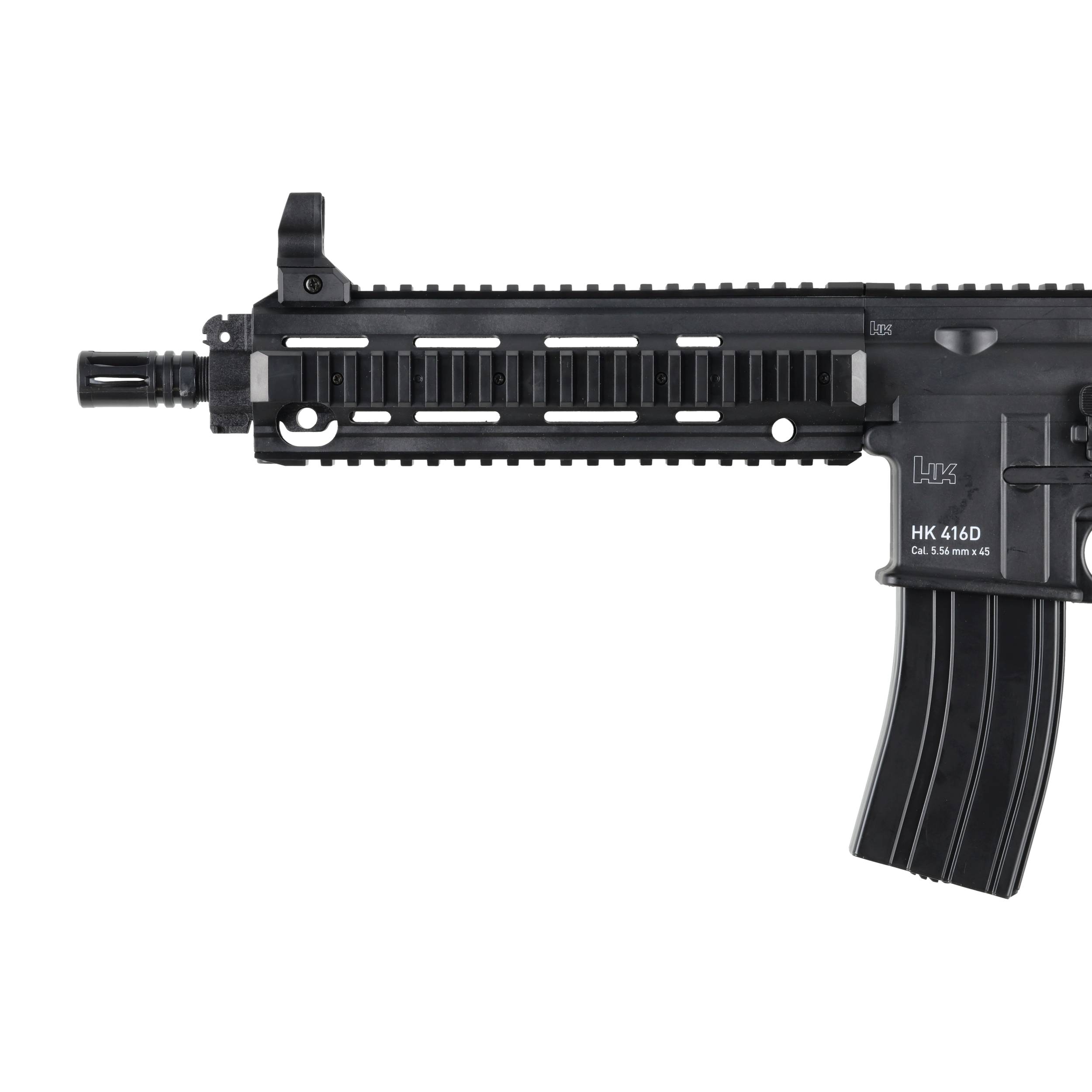 Replika HK416D ma łoże R.I.S. oraz górną szyną Picatinny, które pozwalają na używania dodatkowych akcesoriów strzeleckich np. chwytu wertykalnego, latarki lub kolimatora. Karabinek ma mechaniczne pprzyrządy celownicze, które po instalacji kolimatora można łatwo zdemontować. Kolba o regulowanej długości (5 pozycji) zakończona jest antypoślizgową stopką, zapewniającą pewny punkt oparcia. Na kolbie oraz łożu znajduję się zaczepy pasa nośnego.