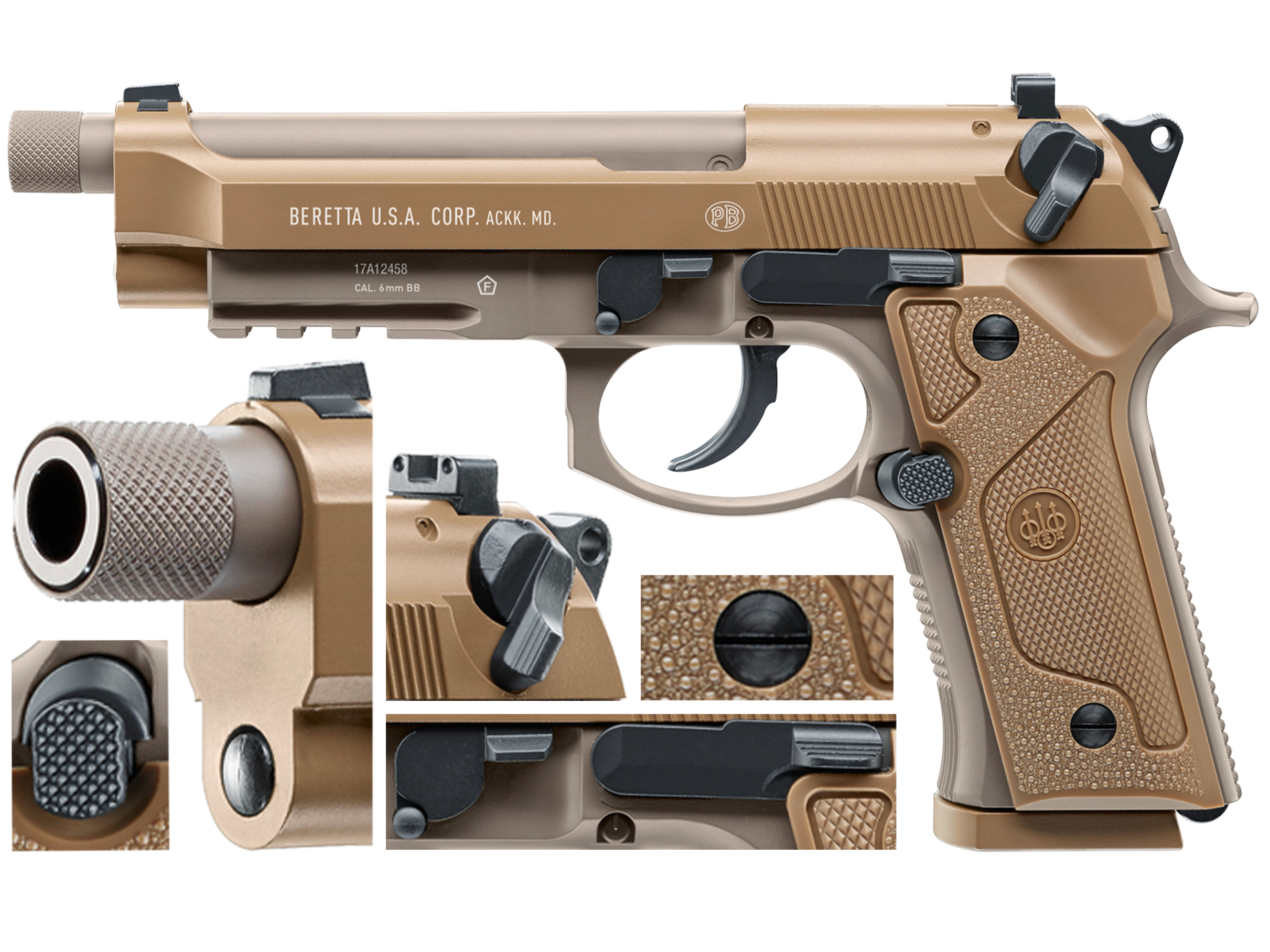 Replika poza polimerowymi okładzinami rękojeści została wykonana w całości z metalu. Wysoką jakość podkreśla frezowany zamek oraz doskonałe spasowanie i odwzorowanie wszystkich detali, wiernie przeniesionych z nowej Beretty M9 armii USA.