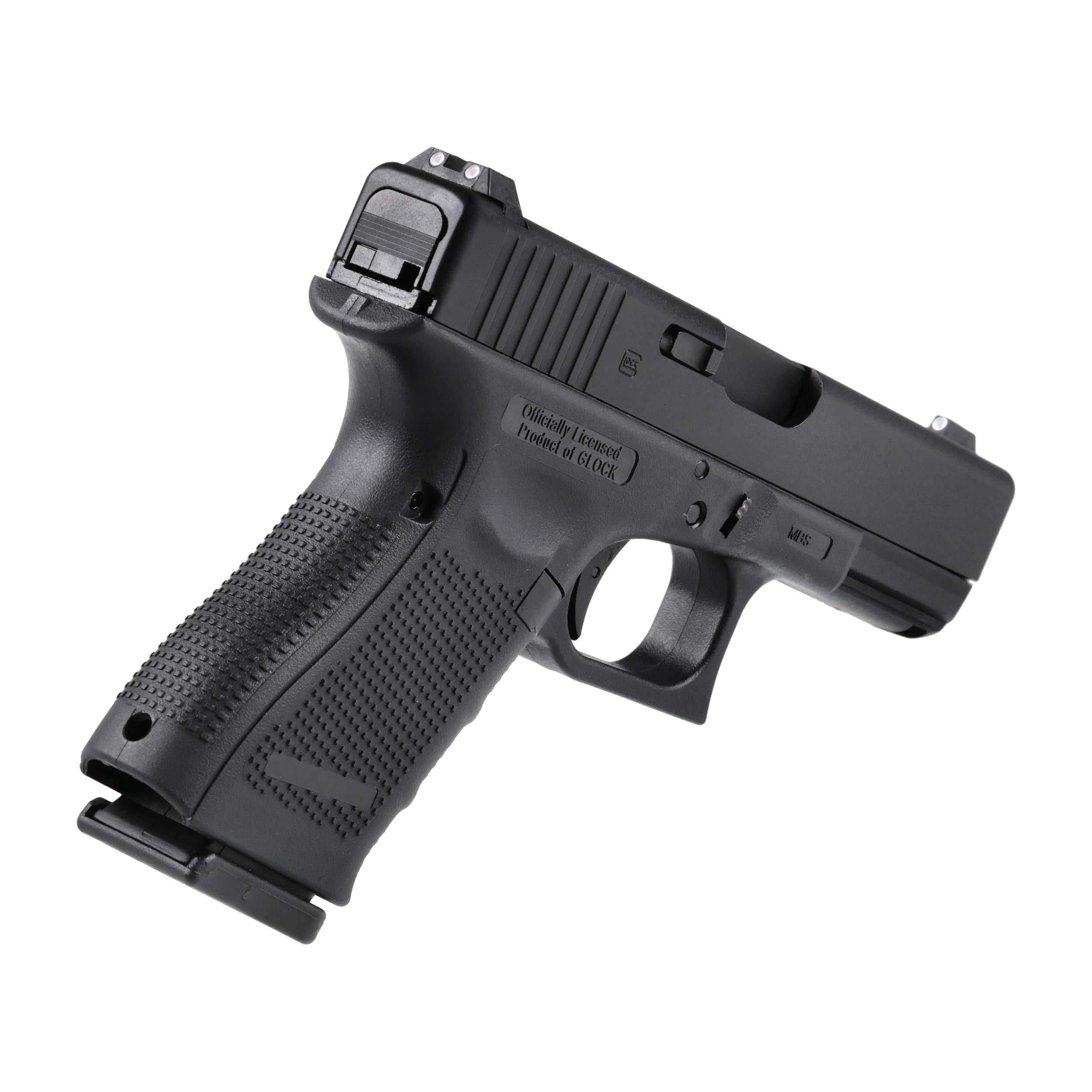 Glock 19 gen 4 ma teksturowaną rękojeść oraz ergonomiczne podcięcia pod palce, co gwarantuje wygodny i stabilny chwyt. W replice zastosowano bezpiecznik spustowy, wymuszający na strzelcu prawidłowe ściąganie języka spustowego. Rozwiązanie to jest zaimplementowane z mechanizmu Safe Action wykorzystywanego w serii Glock. Szczerbina z białą ramką oraz muszka z białą kropką przyspieszają zgrywanie przyrządów celowniczych na celu.