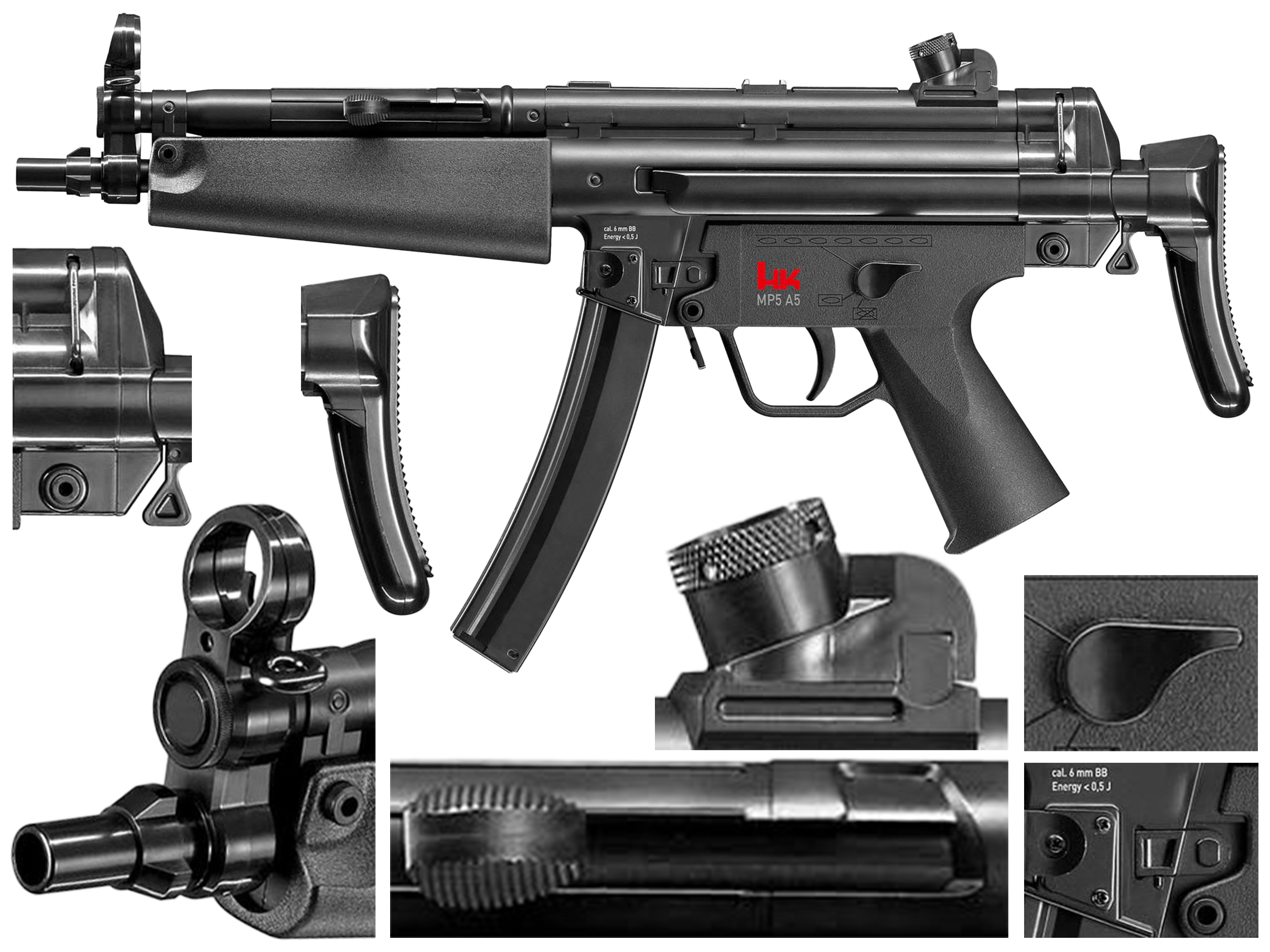 MP5 A5 EBB 6 mm posiada metalowe zaczepy służące do montażu zawieszenia taktycznego.