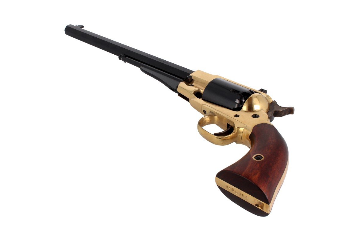 1858 Remington New Texas Buffalo .44, sześciostrzałowy kapiszonowy rewolwer czarnoprochowy ładowany odprzodowo z ramą mosiężną zamkniętą i 12" lufą.