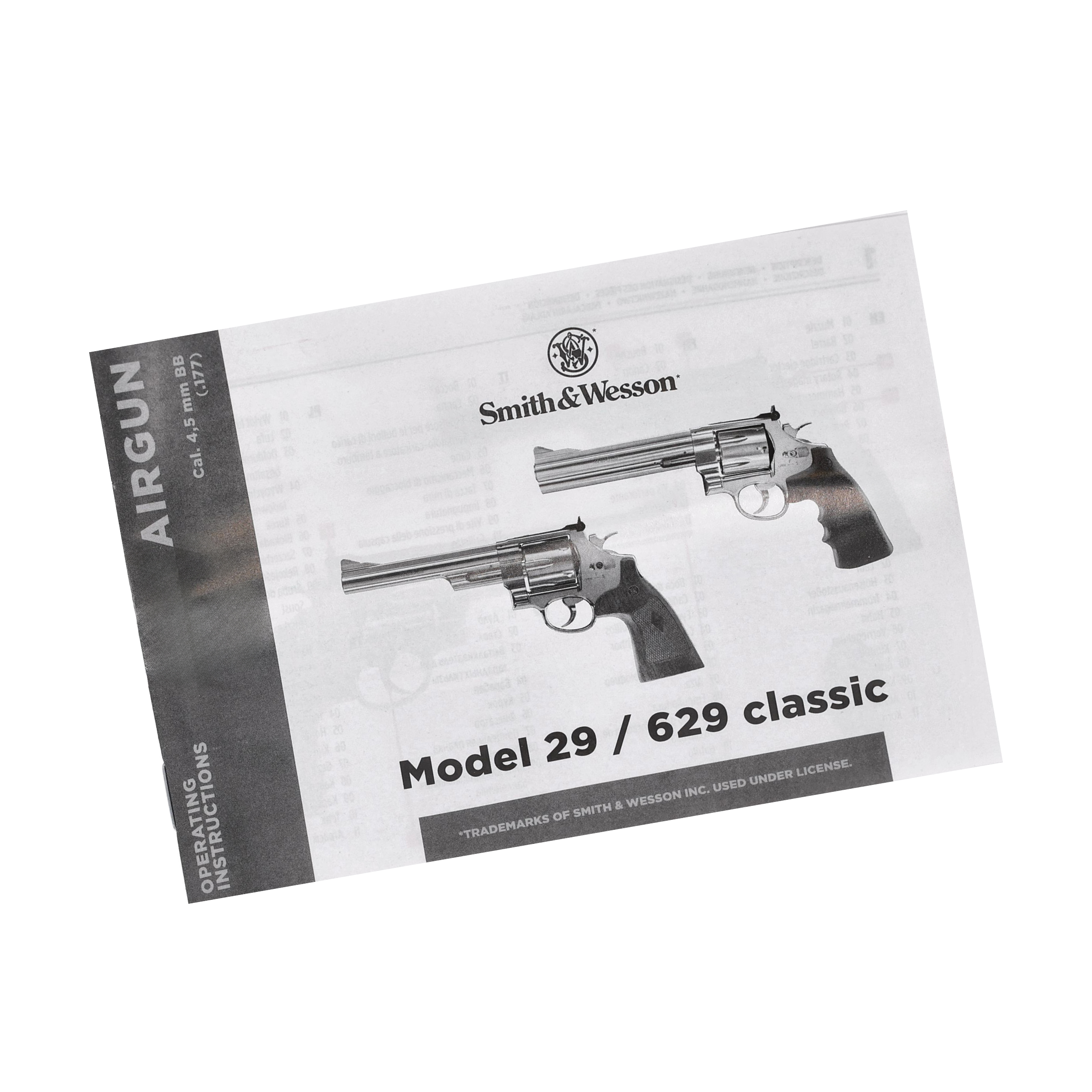 Na lufie i szkielecie naniesiono licencjonowane oznaczenia Smith & Wesson. Wiatrówka ma 6,5" lufę, dzięki czemu rewolwer może z powodzeniem strzelać także na większym dystnasie. Smith&Wesson 629 wykorzystuje mechaniczne przyrządy celownicze w postaci stałej muszki (z kontrastową wkładką) oraz szczerbinki regulowanej w pionie i poziomie. Za komfort strzelania oraz wygodny chwyt rewolweru odpowiadają gumowane okładziny z anatomicznymi wycięciami na palce.