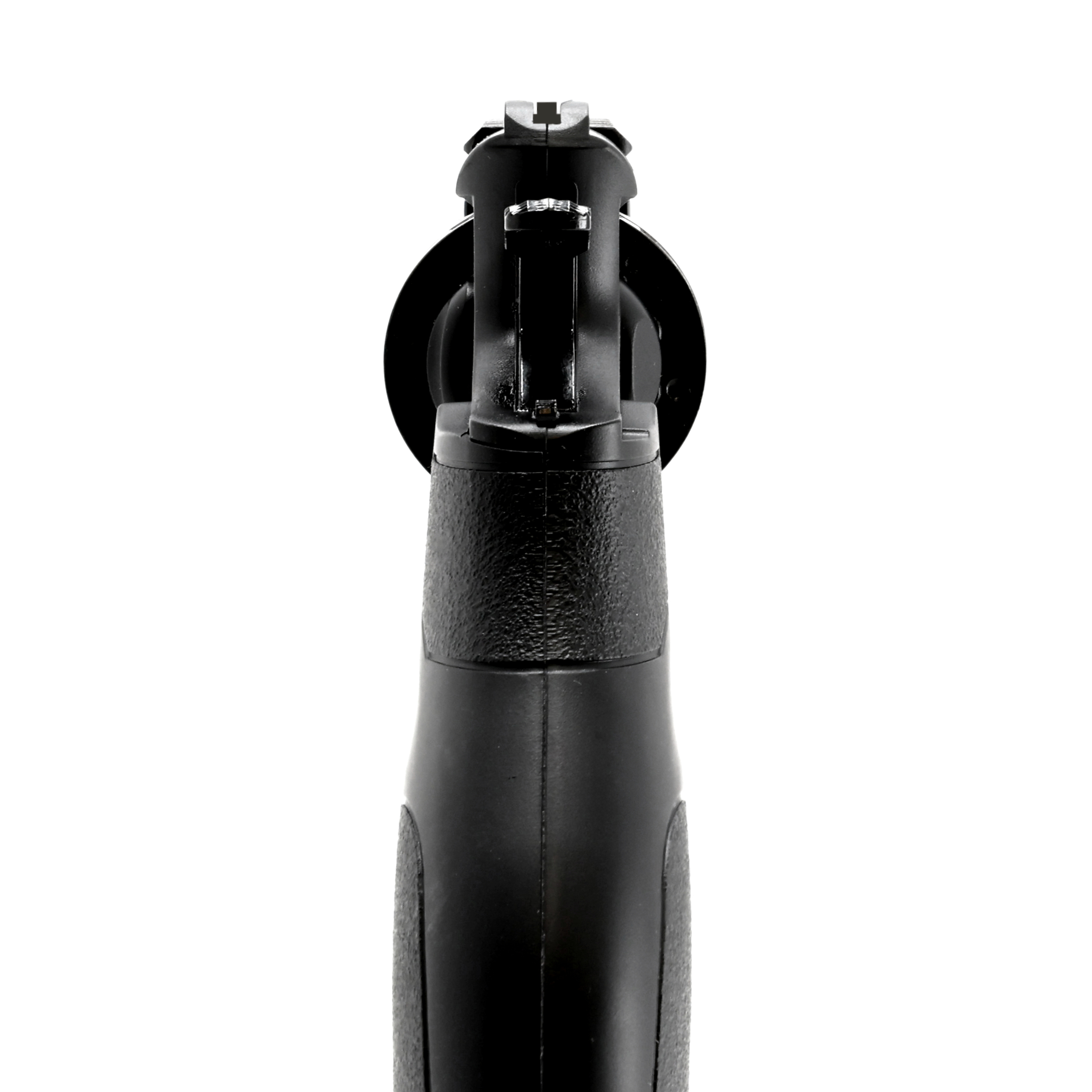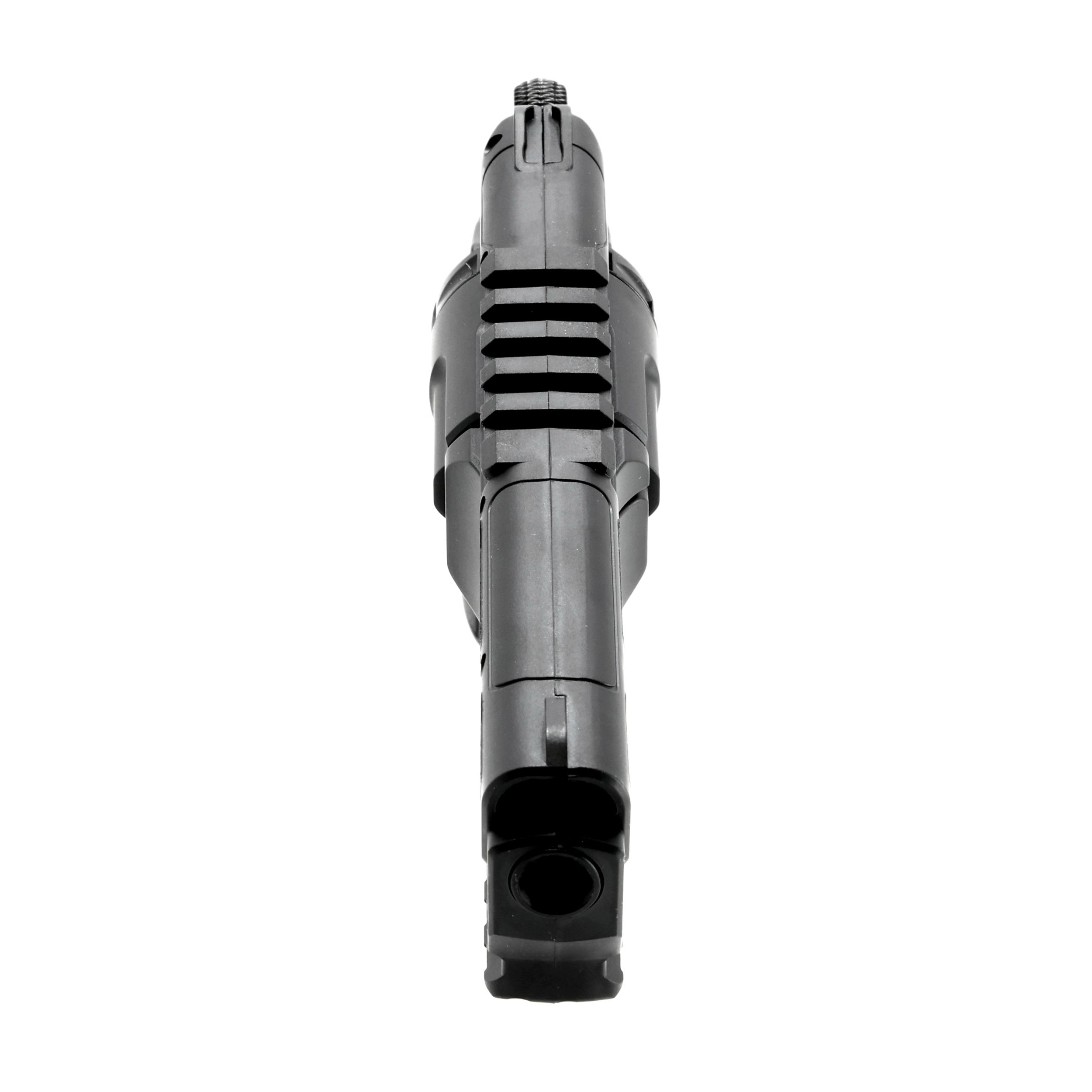 Nowoczesny design wiatrówki podkreśla wysoki profil lufy z charakterystycznym portingiem oraz anatomicznie profilowana rękojeść o antypoślizgowej fakturze. Mechaniczne przyrządy celownicze (muszka i szczerbina) mają niski profil ułatwiający wyciąganie rewolweru z kabury.