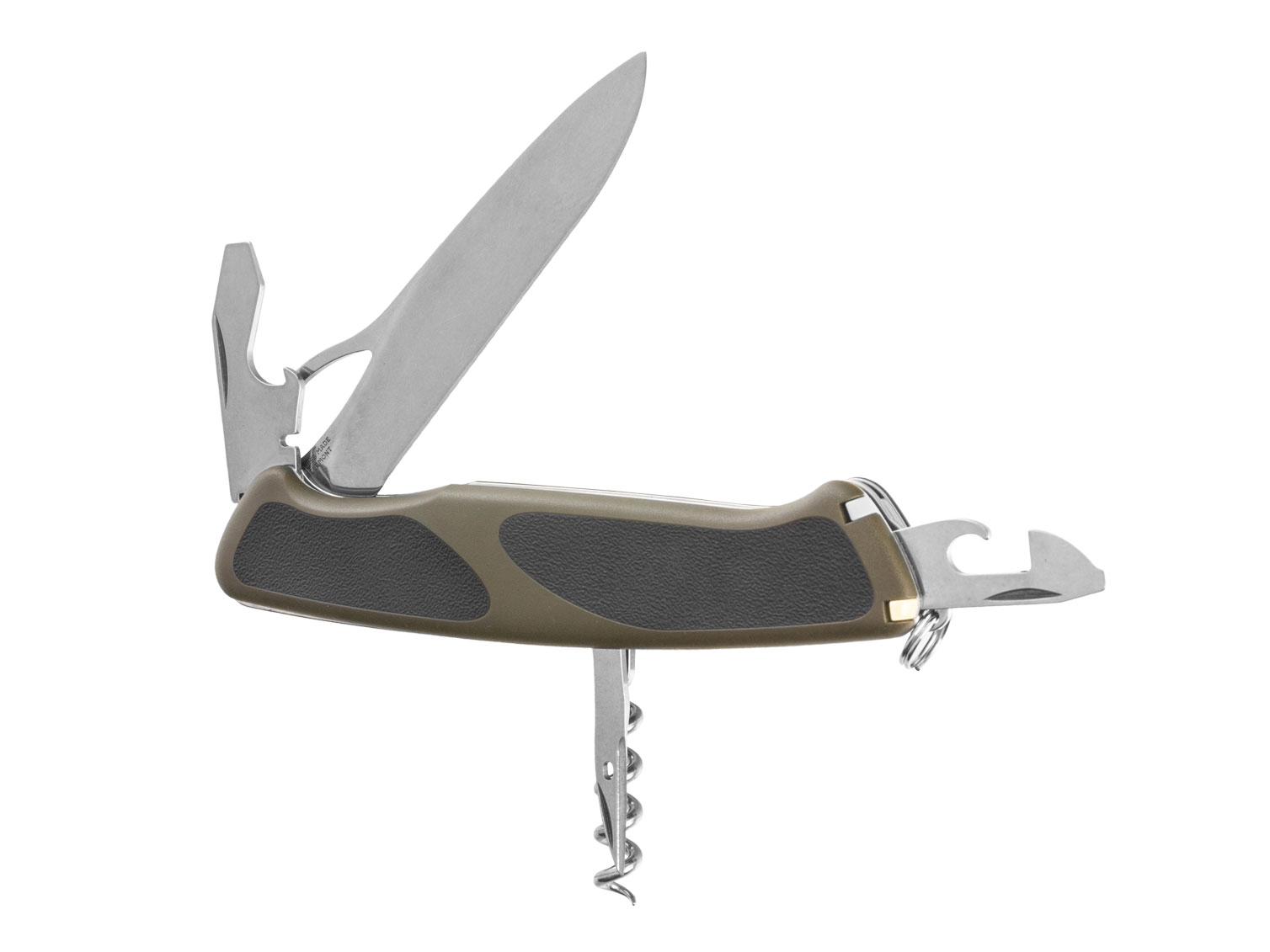 Wbudowane narzędzia: przyrząd do zdejmowania izolacji, korkociąg, kółko do kluczy, mini śrubokręt, otwieracz do puszek, otwieracz do butelek, ostrze duże, pęseta/pinceta, szpikulec, szydło, wykałaczka