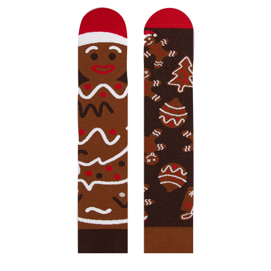 Nanushki El Gingero to oryginalne skarpetki dla niej i dla niego, z motywem świątecznych pierniczków oraz samego piernika w czapce Mikołaja. Idealne skarpetki zarówno dla młodszych amatorów słodkości.