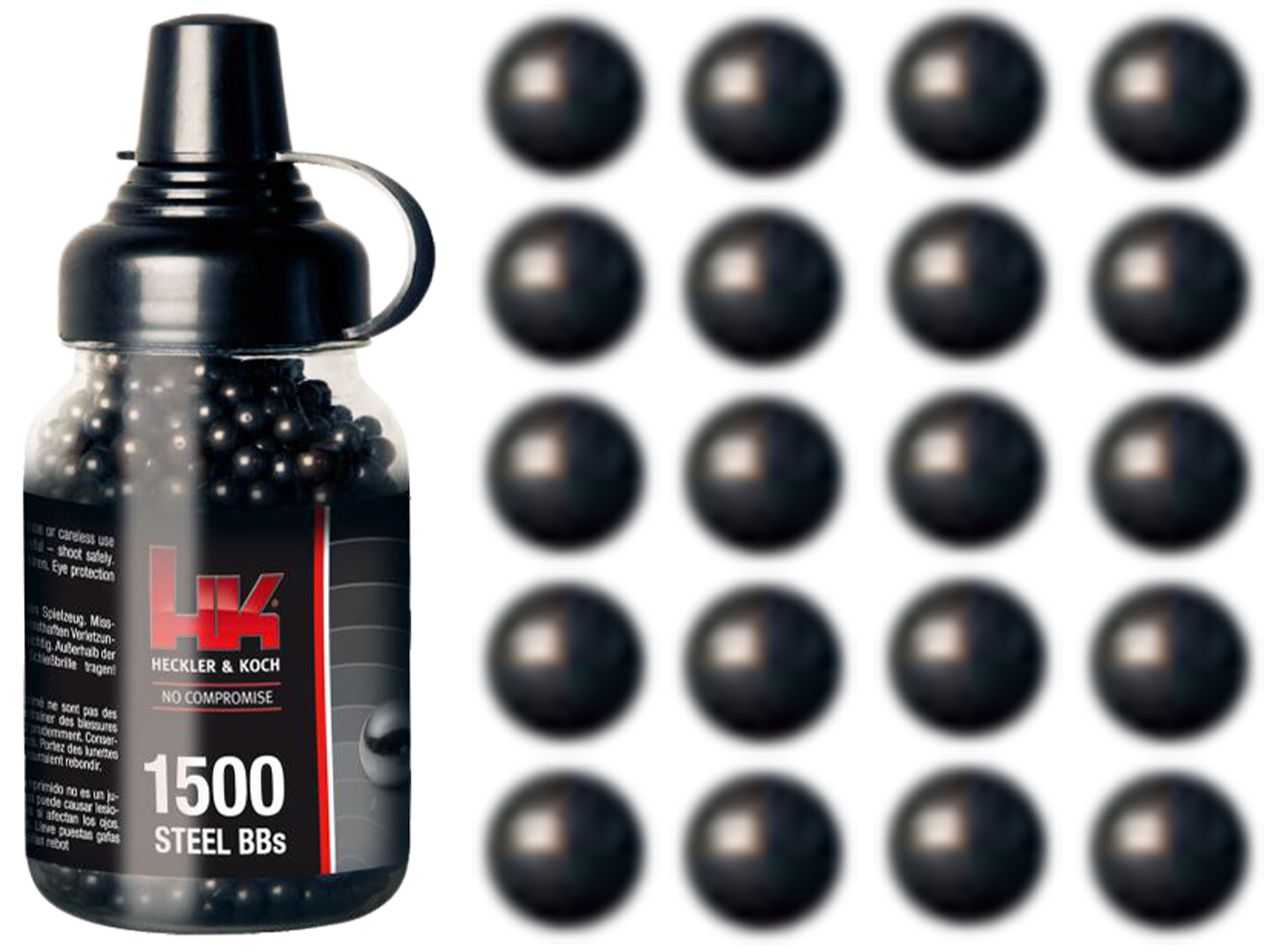 Śrut BBs Heckler&Koch charakteryzuje wysoka gładokość, precyzja wykonania oraz dobre wyważenie, co korzystanie wpływa na celność i powtarzalność strzałów. Praktyczny słoiczek z lejkiem znacznie ułatwia szybkie ładowanie magazynka.