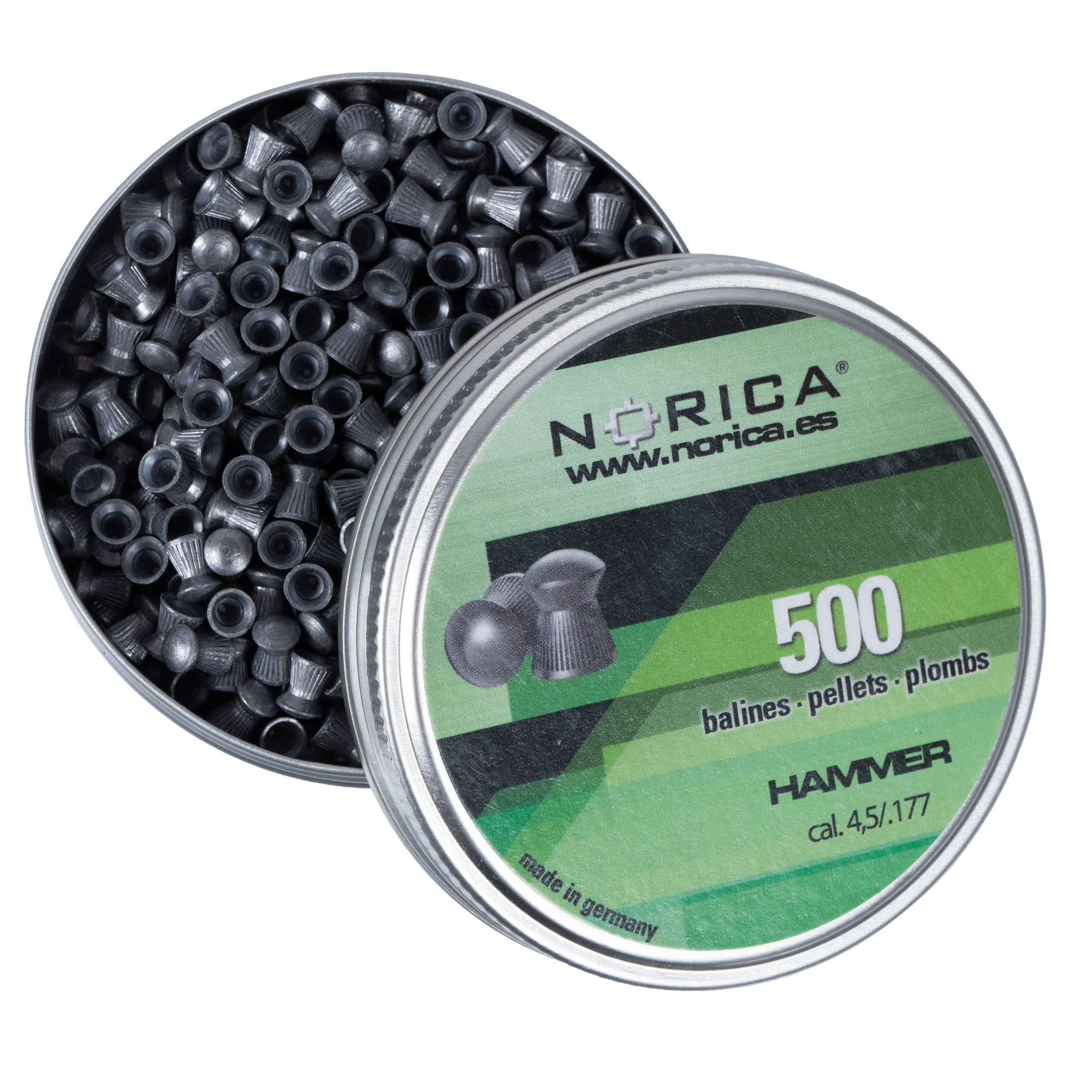 Norica Hammer 4,5 mm 500 szt. to wysokiej jakości śrut półokrągły przeznaczony do precyzyjnego strzelania na większym dystansie.