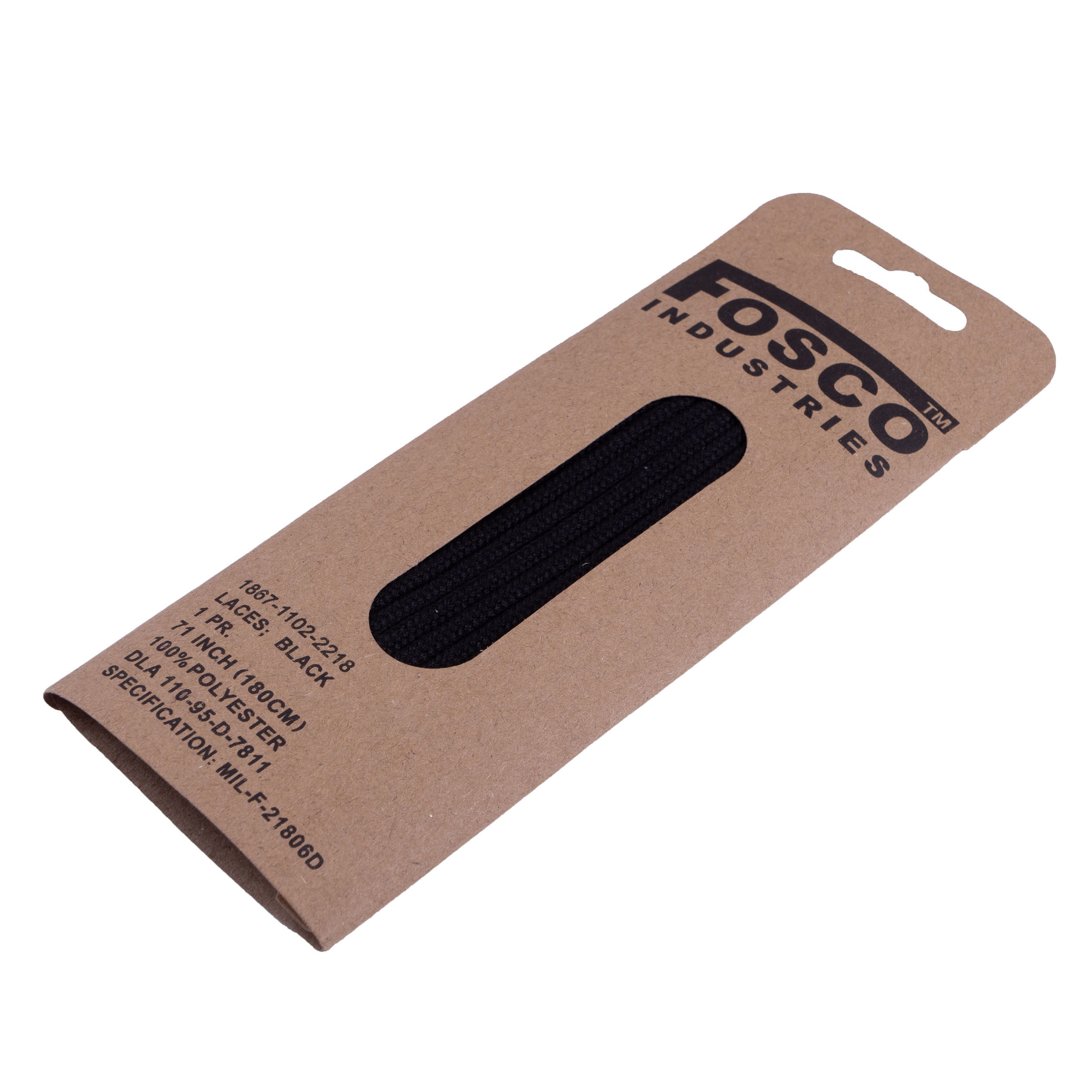 Sznurówki Fosco 180 cm poliester czarne to para mocnych sznurowadeł do obuwia wojskowego oraz glanów.