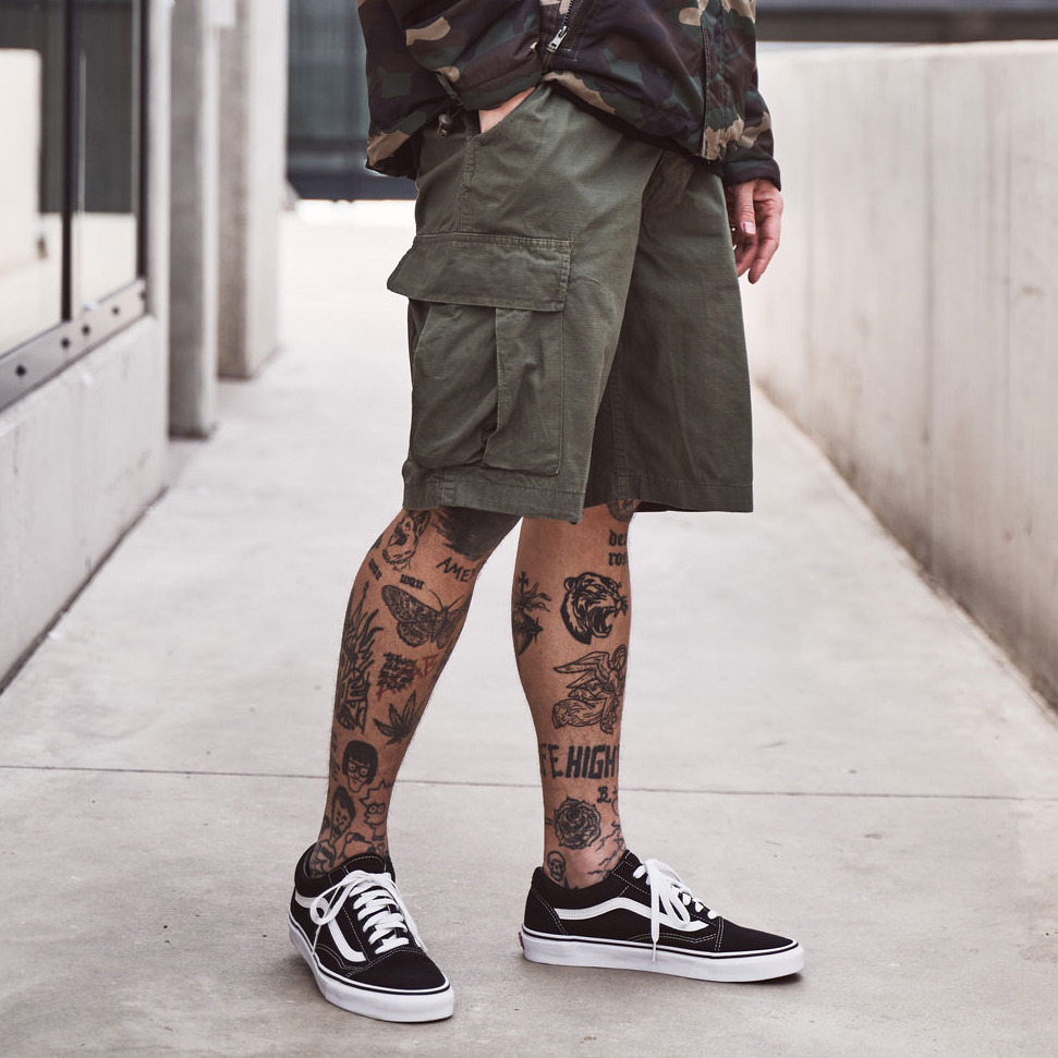 Spodenki mają dwie kieszenie z przodu, dwie z tyłu oraz dwie boczne. Szorty zapina się są na guziki. Dodatkowo w pasie wszyto sznurek, umożliwiający lepsze dopasowanie i noszenie odzieży bez paska