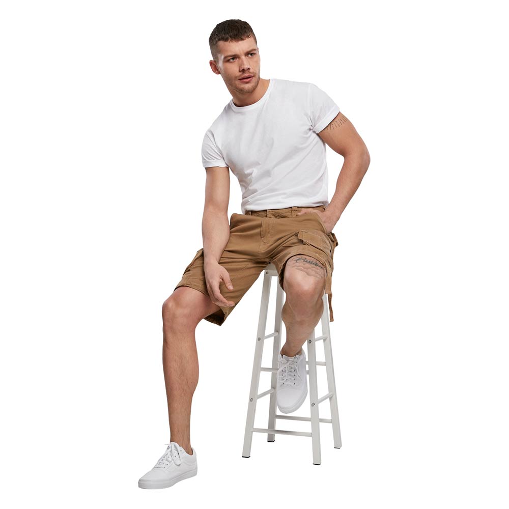 Komfortowe szorty męskie Urban Legend w kolorze beżowym od firmy Brandit posiadają podszewke pasa oraz kieszeni zrobioną z mieszkanki poliestru i bawełny.