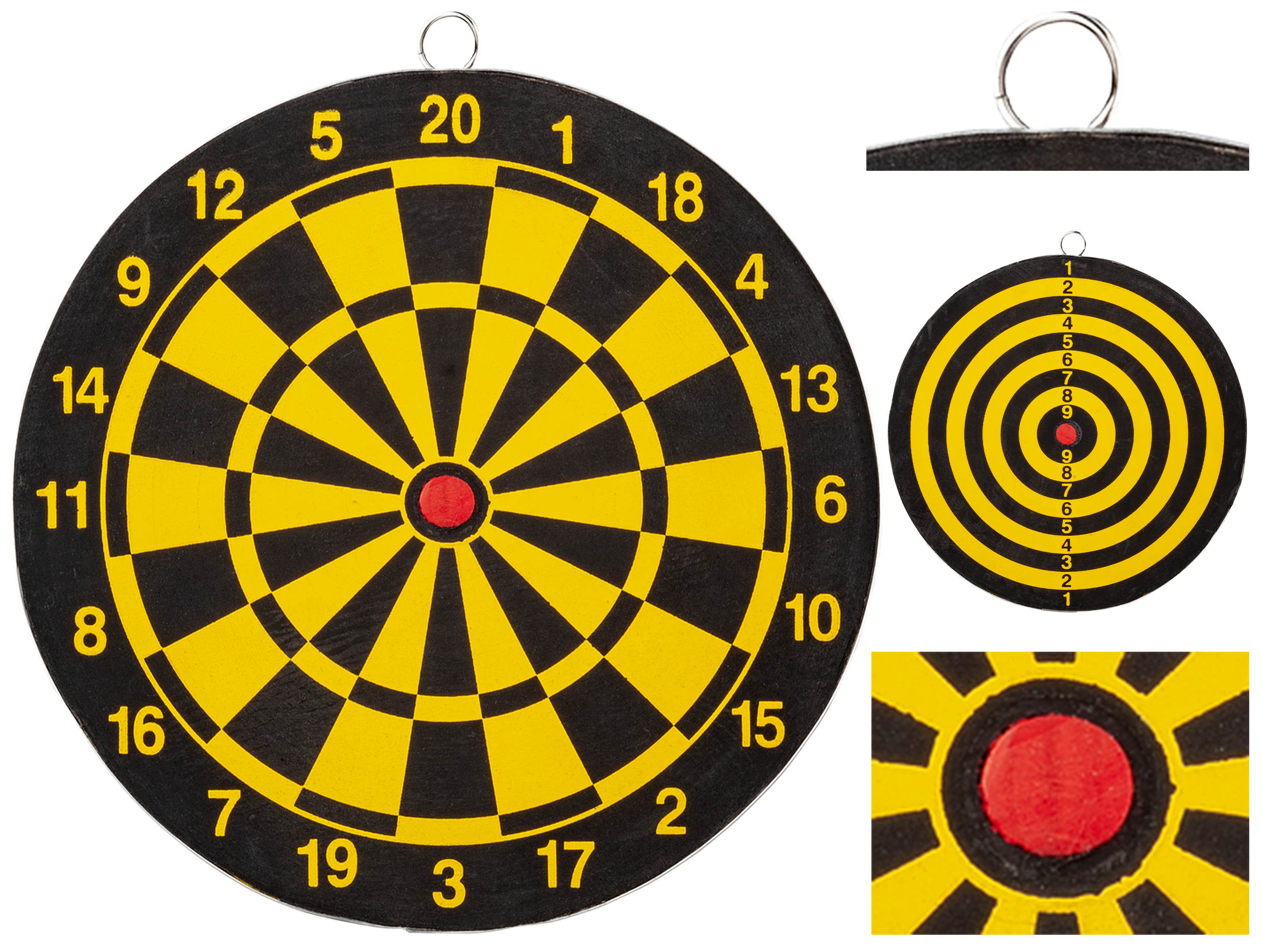 Tarcza o średnicy 20 cm ma wytrzymałą podstawę z polimeru oraz warstwę specjalnej pianki, zatrzymującej lotki w tarczy. Czarno-żółte pola tarczy są punktowane, dlatego możemy łączyć rekreację, strzelecką pasję i rywalizację sportową bez wychodzenia z domu.