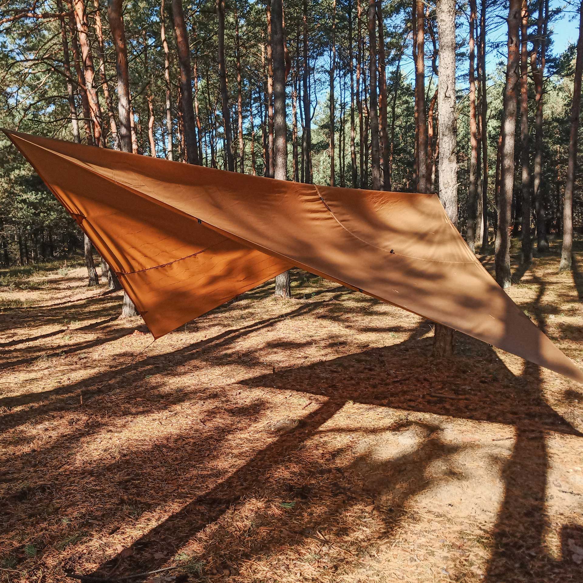 Możliwości, jakie zapewnia tarp są dosłownie niezliczone – od możliwości stworzenia prostego zadaszenia chroniącego przed deszczem, przez obszerne konstrukcje gwarantujące nam wygodę przebywania w ich wnętrzu po aerodynamiczne norki doskonale zabezpieczające przed trudnymi warunkami atmosferycznymi. Istotną zaletą tego typu schronienia jest również brak konieczności noszenia kompatybilnego stelażu. W jego roli doskonale posłużą kijki trekkingowe, znalezione w lesie gałęzie lub nawet same linki naciągowe. Każdy tarp TigerWood posiada wzmocnienia punktów odciągu oraz podklejone szwy, dzięki czemu gwarantuje zwiększoną trwałość oraz odporność na intensywne podmuchy wiatru.