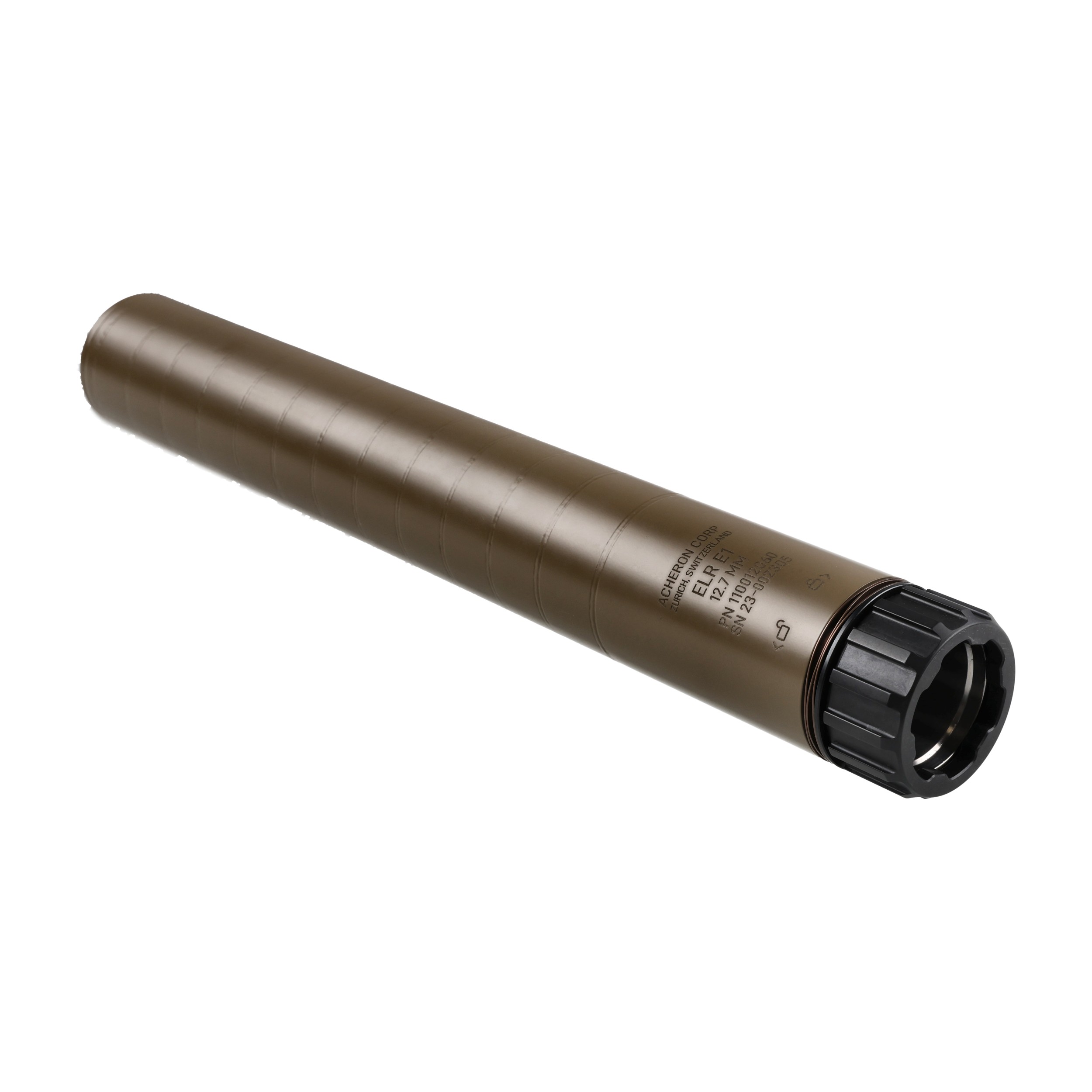 Tłumik dźwięku Acheron ELR E1 to najwyższej jakości urządzenie wylotowe stworzone z myślą o karabinach kal. .50 BMG. Idealnie dostosowany do współpracy z bronią wielkokalibrową, gwarantuje doskonałą moderację potężnego odgłosu największych kalibrów, jednocześnie charakteryzując się ekstremalnie niską masą dzięki wykorzystaniu wysoce wytrzymałego stopu tytanu.