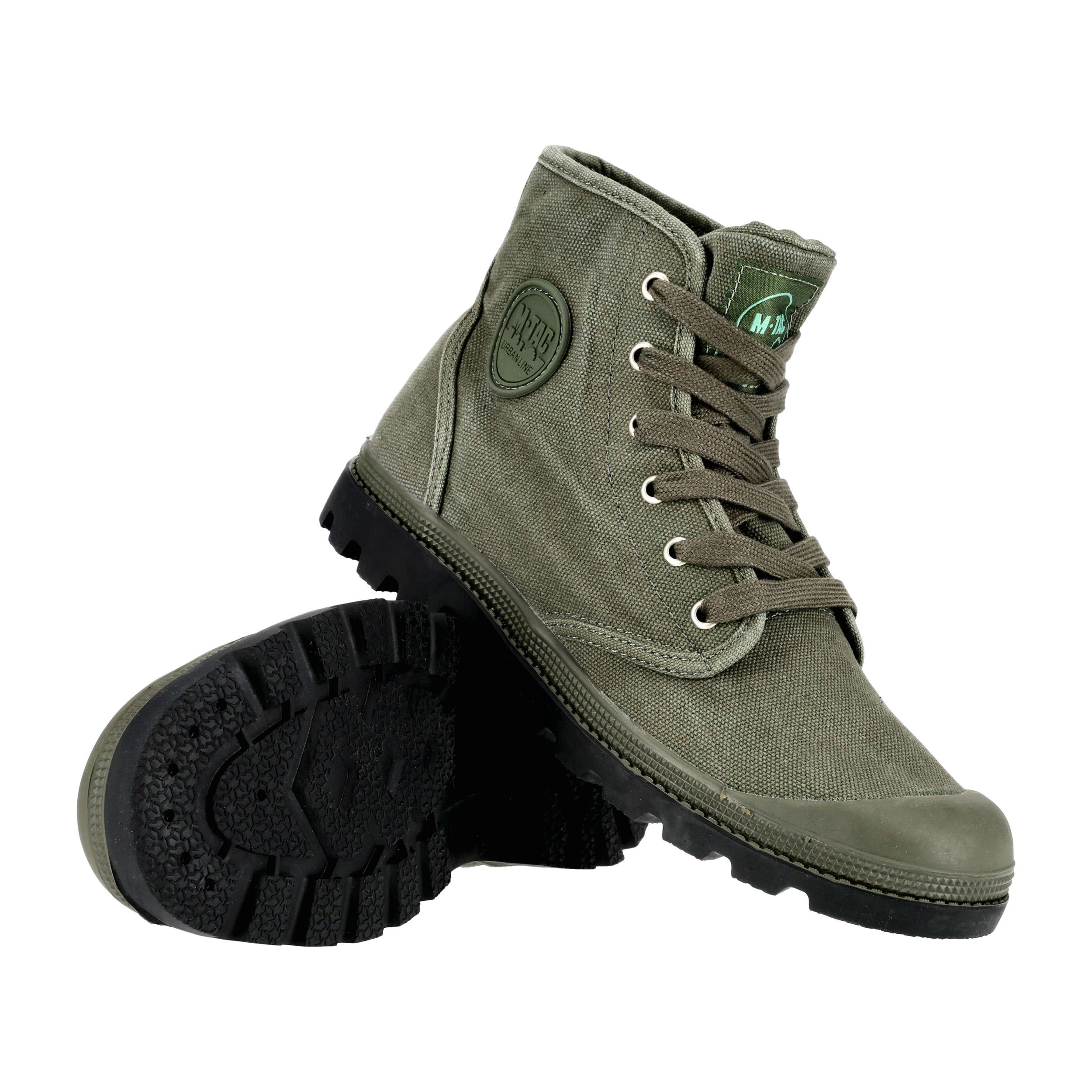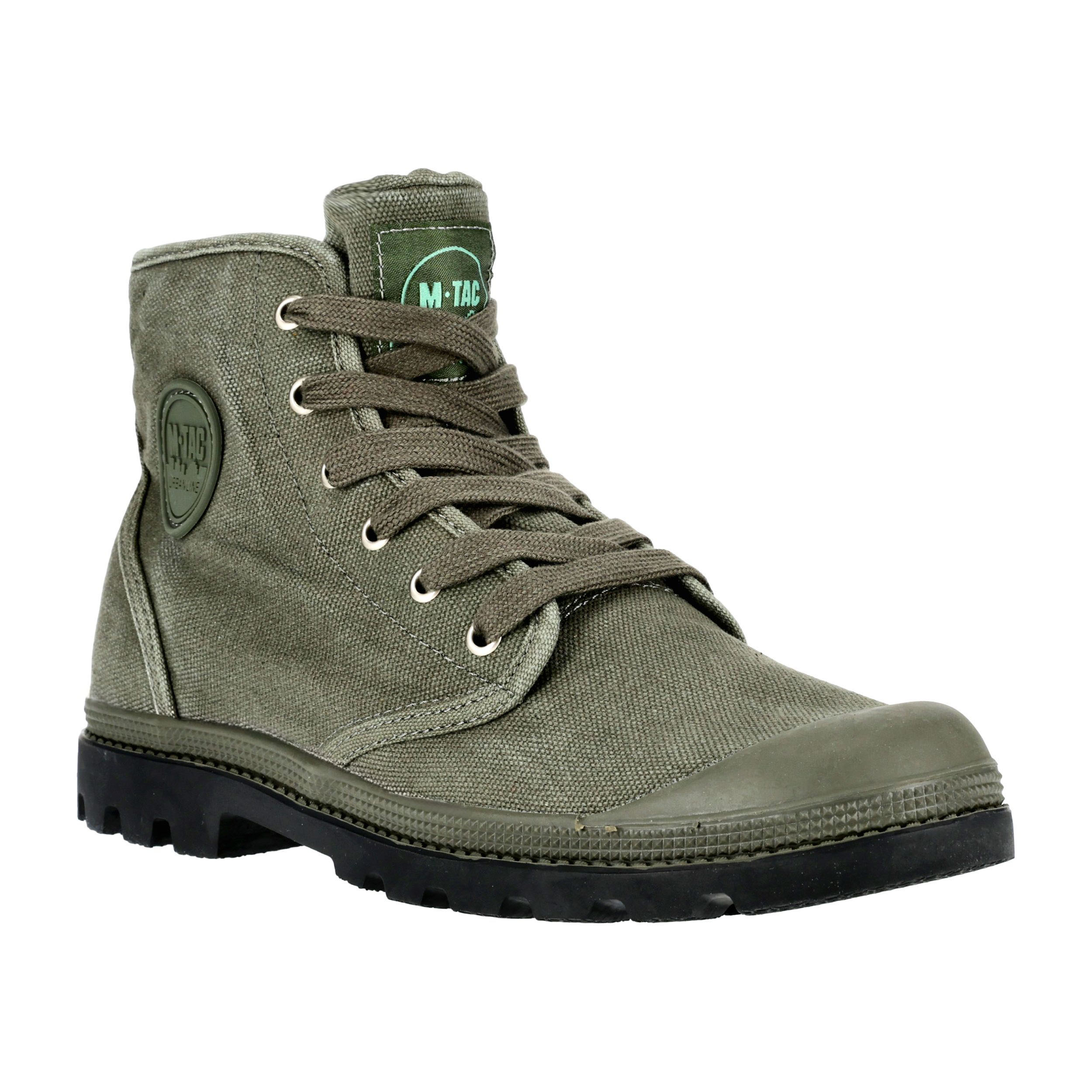Trampki M-Tac wzorowane są na pustynnych butach Legii Cudzoziemskiej. Buty miały prosty i funkcjonalny fason i doskonale sprawdzały się w ekstremalnym klimacie Sahary. Trampki M-Tac produkowane są według tej samej filozofii: prosto, solidnie i funkcjonalnie, dzięki czemu doskonale pasują do stroju codziennego, odzieży militarnej i turystycznej. Świetnie sprawdzą się podczas wypadu do lasu, wędrówki po górach, koncertu rockowego, na strzelnicy oraz w pracy.