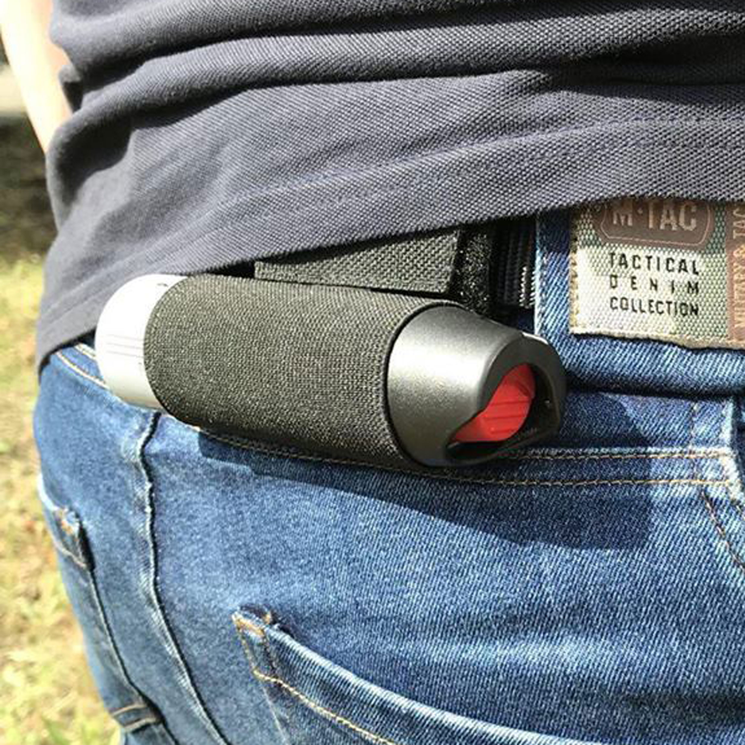 Uchwyt na gaz pieprzowy M-Tac czarny to elastyczna ładownica na miotacz gazu pieprzowego, która pozwala na błyskawiczne dobycie gazu w sytuacji zagrożenia.
