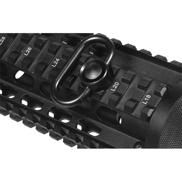Leapers TL-QDSW18 to stalowy zaczep pasa do broni, które można szybko i wygodnie zamontować i wypiąć z broni. W zaczepie zastosowano mechanizm QD (od quick detach-szybkie wypięcie), typu wciśnij kropka, dzięki czemu pas z uchwytami można błyskawicznie zamocować do karabinka (jeśli posiada gniazda QD) i równie szybko odpiąć.