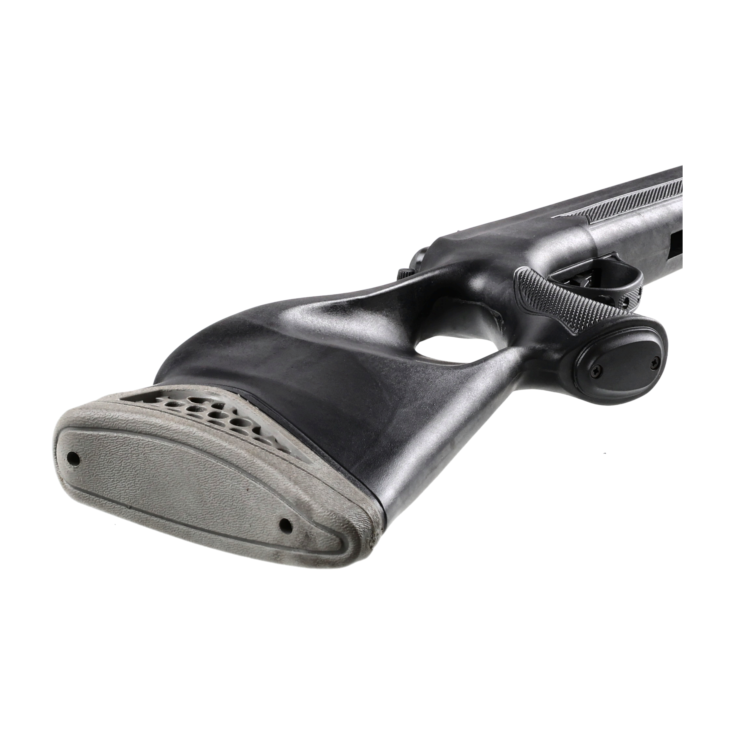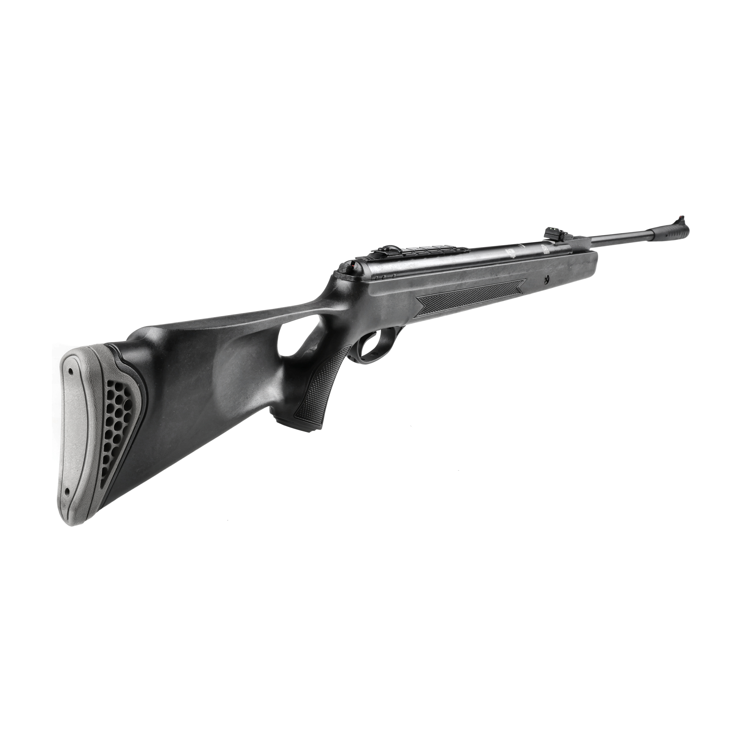 Atutem tego modelu jest również jego łatwa konserwacja, która nie wymaga w zasadzie niczego poza utrzymaniem ogólnej czystości sprzętu. Do czyszczenia warto stosować olejek silikonowy, który dodatkowo zabezpieczy elementy polimerowe i metalowe. Za odporność osady karabinka odpowiada wykorzystanie wytrzymałego polimeru. Kolba typu Thumbhole ma chwyt pistoletowy z otworem na kciuk, co korzystnie wpływa na kontrolę nad karabinkiem. Na chwycie zastosowano moletowanie poprawiające przyczepność dłoni. Karabinek ładowany jest poprzez tradycyjne „łamanie lufy” rozwiązanie szybkie, proste i wygodne. Komfort strzelania zwiększa polimerowa atrapa tłumika o antypoślizgowym frezowaniu, która ułatwia proces napinania sprężyny. Wiatrówka Optima by Hatsan 125 STG TH Sport 6,35 mm ma automatyczny bezpiecznik aktywowany po złamaniu lufy, dlatego nie musisz martwić się o niekontrolowane wystrzały.