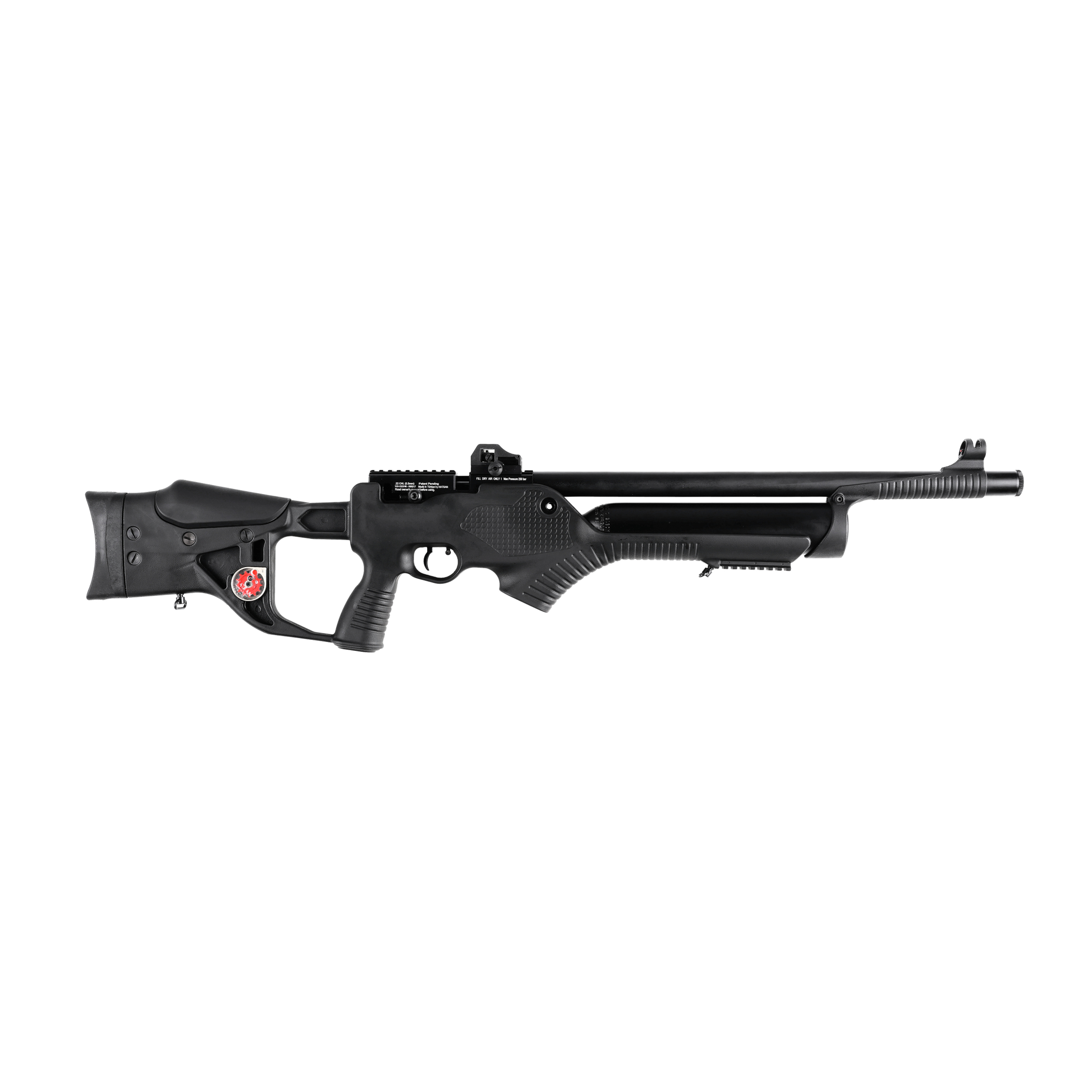 Wiatrówka PCP Optima by Hatsan Barrage 5,5 mm to półautomatyczny karabinek PCP z systemem automatycznego przeładowania śrutu, wyposażony w precyzyjną czokowaną lufę oraz polimerową osadę thumb-hole z regulowaną stopką i baką policzkową.