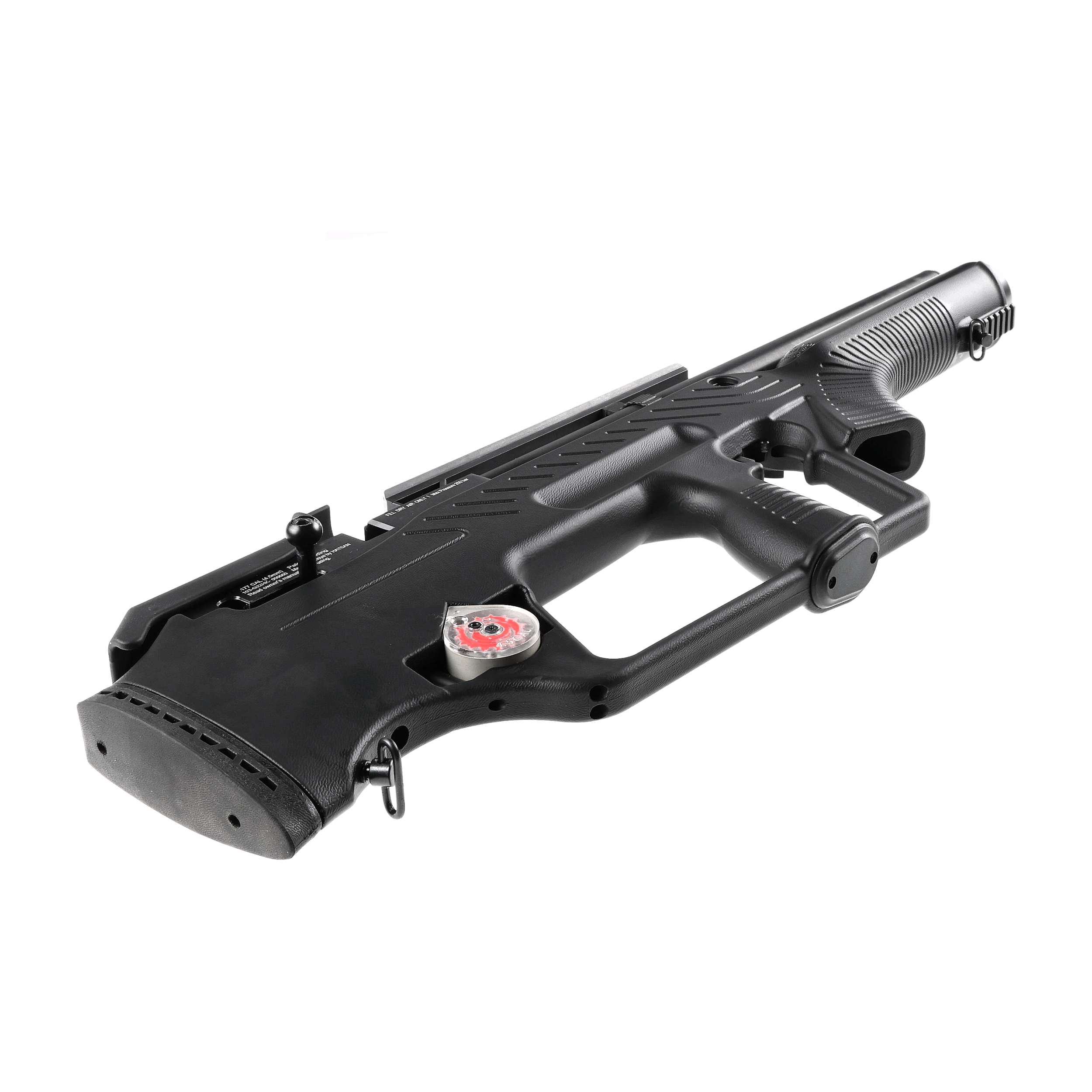 Wiatrówka PCP Optima by Hatsan BullMaster 4,5 mm to nowocześnie zaprojektowany karabinek PCP w układzie bullpup, z systemem automatycznego przeładowania śrutu, czokowaną lufą oraz kolbą z regulowaną baką policzkową.