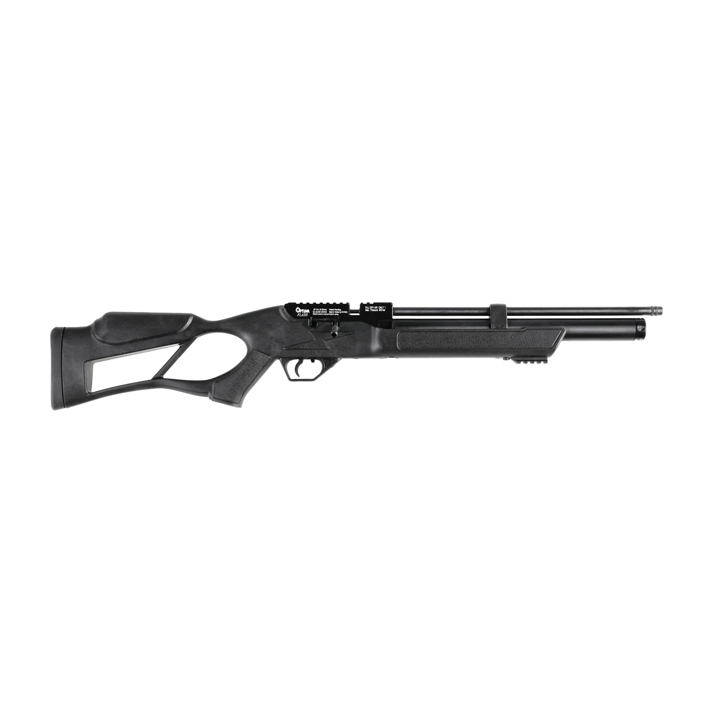 Wiatrówka Optima by Hatsan Flash 6,35 mm to nowoczesny karabinek PCP z kolbą thumbhole, wyróżniający się zwartą i lekką konstrukcją, co sprawia, że jest chętnie wybierany przy strzelców konkurencji Filed Target.