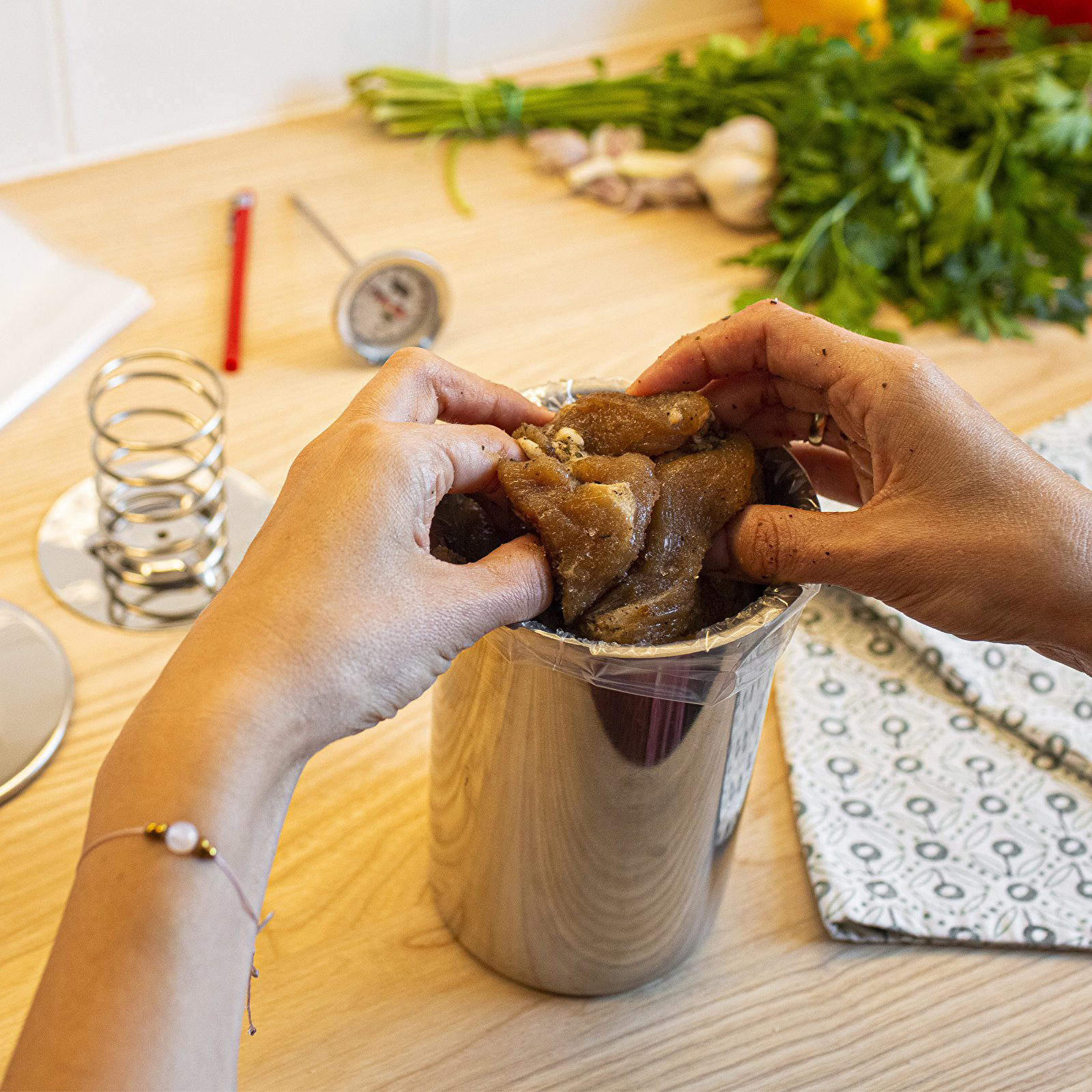 Woreczki wykonano z przezroczystej folii dopuszczonej do kontaktu z żywnością. Woreczki o wymiarach 22,5 × 32 cm są dedykowane do stalowych szynkowarów ze wsadem 3 kg. Jednorazowe torebki nie są proste i w użyciu i ułatwiają zachowanie szynkowaru w czystości. Po wyzłożeniu woreczka we wnętrzu szynkowara wystarczy napełnić je wybranym farszem, zawinąć, oraz przycisnąć sprężyną i zamknąć pokrywą. Równie proste jest wyjmowanie gotowej potrawy, w tym celu wystarczy delikatnie wysunąć wkład z szynkowaru.