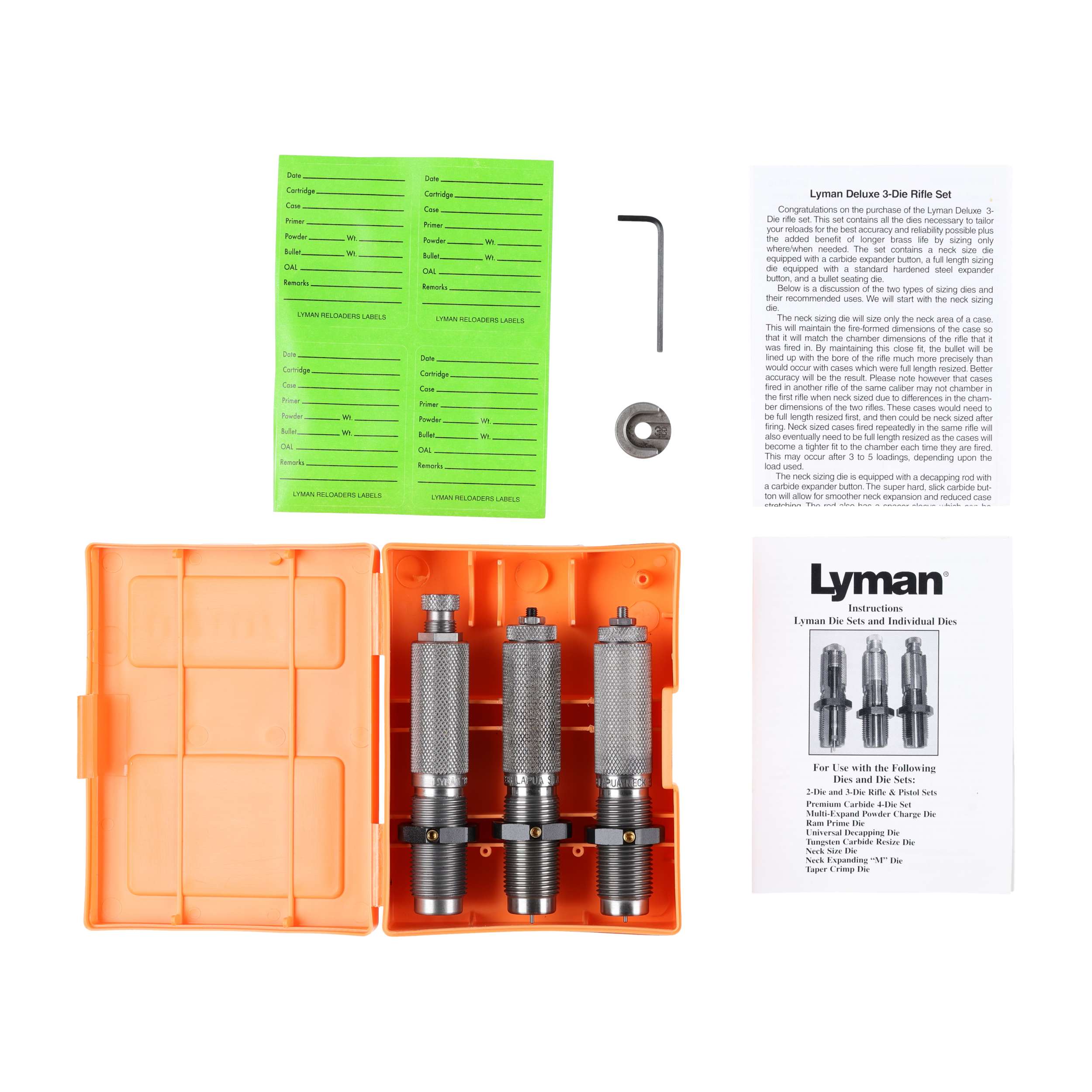 Zestaw trzech matryc karbidowych Lyman Deluxe .338 Lapua Magnum zapewnia większą elastyczność podczas elaboracji amunicji i gwarantuje najwyższą trwałość.