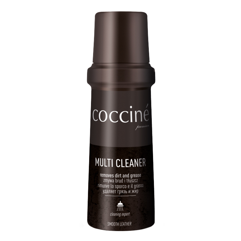 Cocciné Multi Cleaner to silny środek czyszczący do skóry licowej, pozwalający na zachowanie jej w dobrej kondycji i zapobieganie zniszczeniu. Jest szczególnie polecany do usuwania błota śniegowego z zawartością soli drogowej, ale usuwa również inne zabrudzenia i resztki wcześniej użytych preparatów i środków chemicznych.