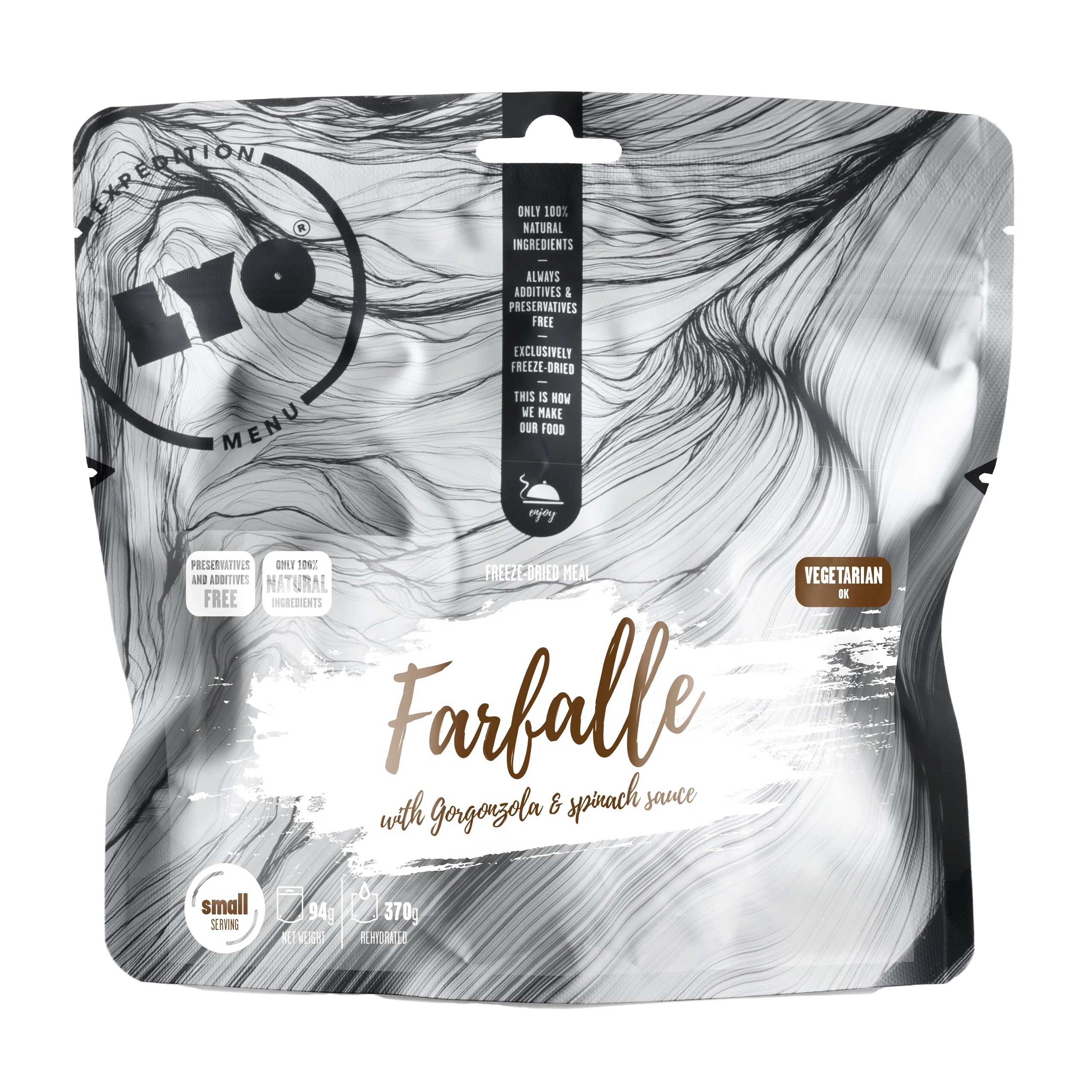 LyoFood Farfalle szpinakowo-serowe 370 g to wyraziste danie wegetariańskie prosto ze słonecznej Italii. Makaron w sosie kremowym, ser gorgonzola, szpinak oraz szczypta płatów migdałowych, tylko tyle wystarczy, by Twoje zmysły smakowe oszalały.