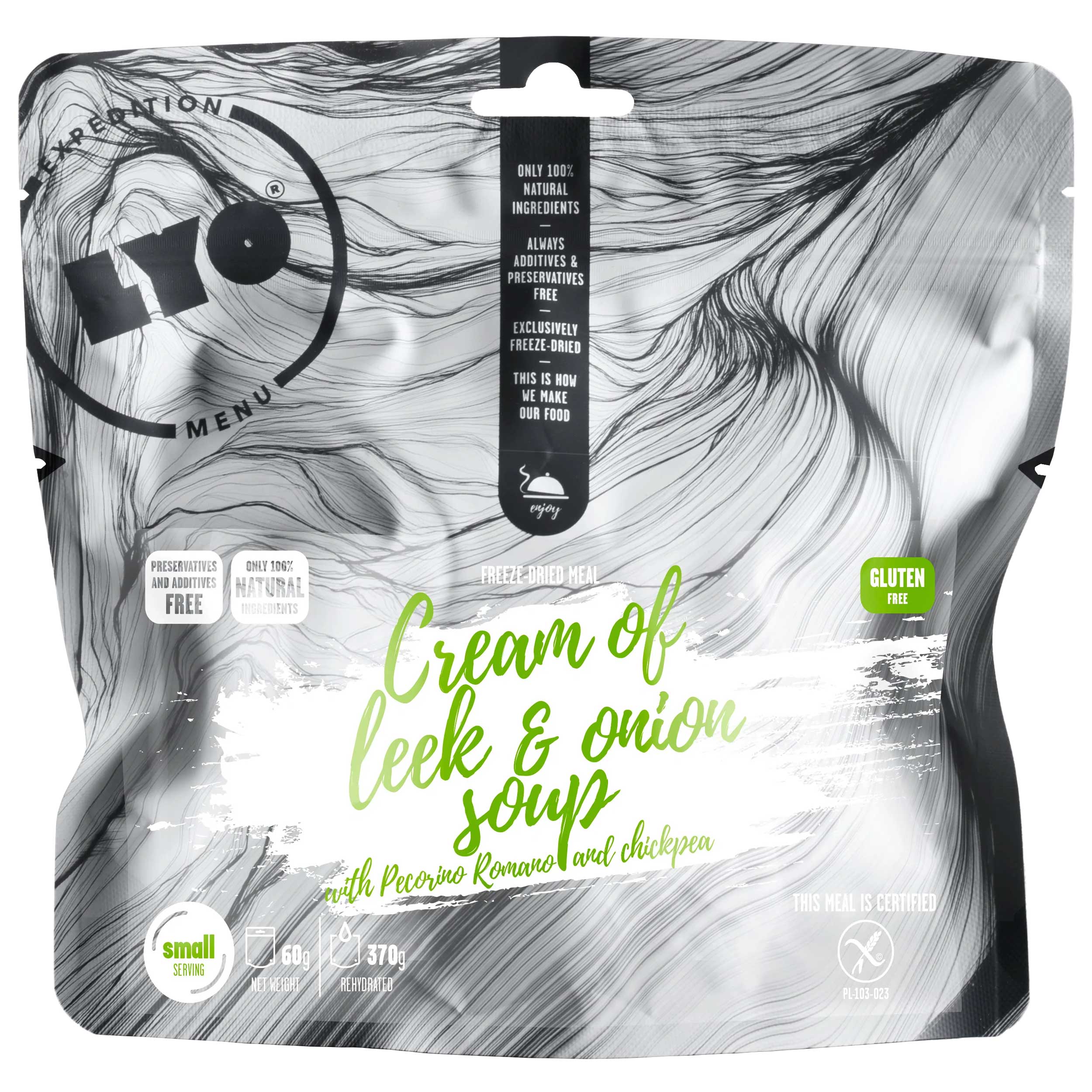 Myśląc o liofilizowanej żywności z reguły mamy przed oczami owoce lub potrawy oparte na ryżu i mięsie. Nowa kolekcja LyoFood pozwoli nam cieszyć się smakiem bogatych i rozgrzewających zup, które z pewnością docenimy w roli lekkiego, aczkolwiek pożywnego lunchu w terenie. Skorzystaj z unikalnych kompozycji kremowych liofilizatów LyoFood i zapewnij sobie prawdziwą przyjemność z jedzenia na łonie natury. Wersja bazująca na kremie cebulowo-porowym wzbogaconym smakiem sera pecorino romano.
